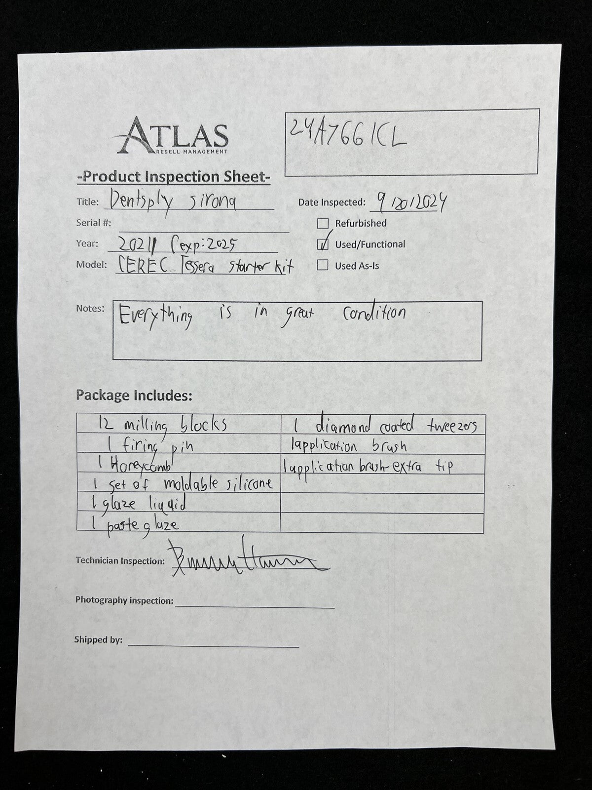 Atlas Resell Management has more experience testing and shipping CEREC and other CAD/CAM units than anyone else on eBay. Just check out the wide selection of CAD/CAM units in our store.We're proud to be the most trusted source for quality used CAD/CAM units in the pre-owned dental equipment market. Your purchase will NOT include: This product is pre-owned and may not include the same accessories as a new, unused unit. - other accessories not shown or listed here.