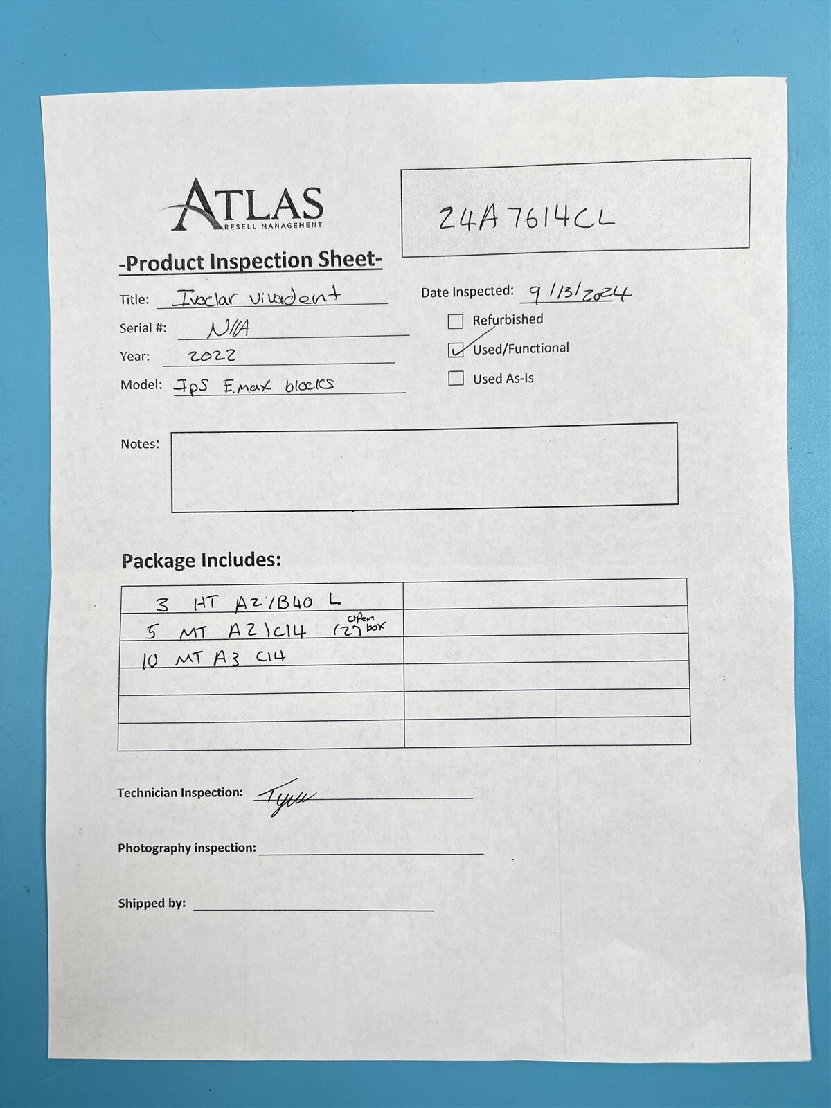 Atlas Resell Management has more experience testing and shipping CEREC and other CAD/CAM units than anyone else on eBay. Just check out the wide selection of CAD/CAM units in our store.We're proud to be the most trusted source for quality used CAD/CAM units in the pre-owned dental equipment market. Your purchase will NOT include: This product is pre-owned and may not include the same accessories as a new, unused unit. - other accessories not shown or listed here.Lot of 20 Blocks: (3) HT A2/ B40 L Brand New in Box, (5) MT A2/ C14 Brand New In Box (2) Open Box, (10) MT A3/C14 Open Box Year: 2022