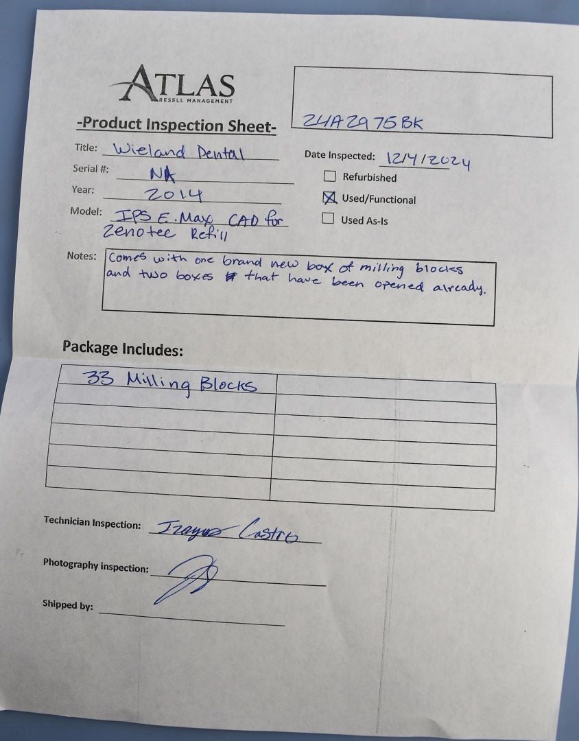 Atlas Resell Management has more experience testing and shipping CEREC and other CAD/CAM units than anyone else on eBay. Just check out the wide selection of CAD/CAM units in our store.We're proud to be the most trusted source for quality used CAD/CAM units in the pre-owned dental equipment market. Your purchase will NOT include: This product is pre-owned and may not include the same accessories as a new, unused unit. - other accessories not shown or listed here.Comes with one brand new box of milling blocks and two that have been opened already.