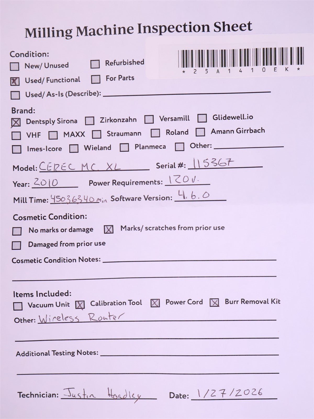 Atlas Resell Management has more experience testing and shipping CEREC and other CAD/CAM units than anyone else on eBay. Just check out the wide selection of CAD/CAM units in our store.We're proud to be the most trusted source for quality used CAD/CAM units in the pre-owned dental equipment market. Your purchase will NOT include: This product is pre-owned and may not include the same accessories as a new, unused unit. - other accessories not shown or listed here.The unit was powered on and successfully updated to the latest software version. Following the update, it completed a full cleaning cycle and was subsequently calibrated. The system then underwent a comprehensive series of diagnostic evaluations, including the force sensor/stiffness assessment, load test, and motor stepper test. All tests passed without issue, confirming that the unit is fully operational.