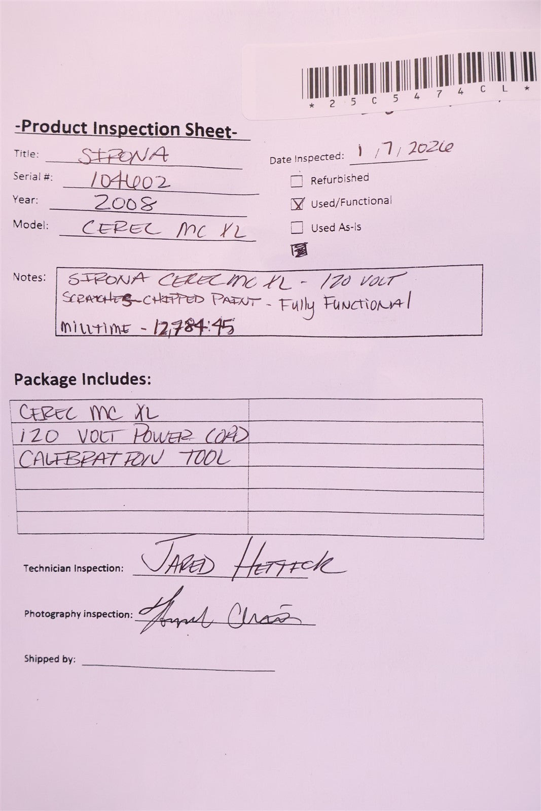 Atlas Resell Management has more experience testing and shipping CEREC and other CAD/CAM units than anyone else on eBay. Just check out the wide selection of CAD/CAM units in our store.We're proud to be the most trusted source for quality used CAD/CAM units in the pre-owned dental equipment market. Your purchase will NOT include:This product is pre-owned and may not include the same accessories as a new, unused unit. - other accessories not shown or listed here.I tested the CEREC MC XL by running its built‑in startup check, which automatically verifies the motors, spindle, sensors, and water system. After that, I went through the basic functional checks myself, making sure the water was flowing properly, the pump was working, and the tools were being detected correctly. Once the operator checks were done, I used the service diagnostics to confirm the axes were calibrated, the motors were loading correctly, and all sensors were responding the way they should. Altogether, this confirmed the machine was functioning properly and ready for use.