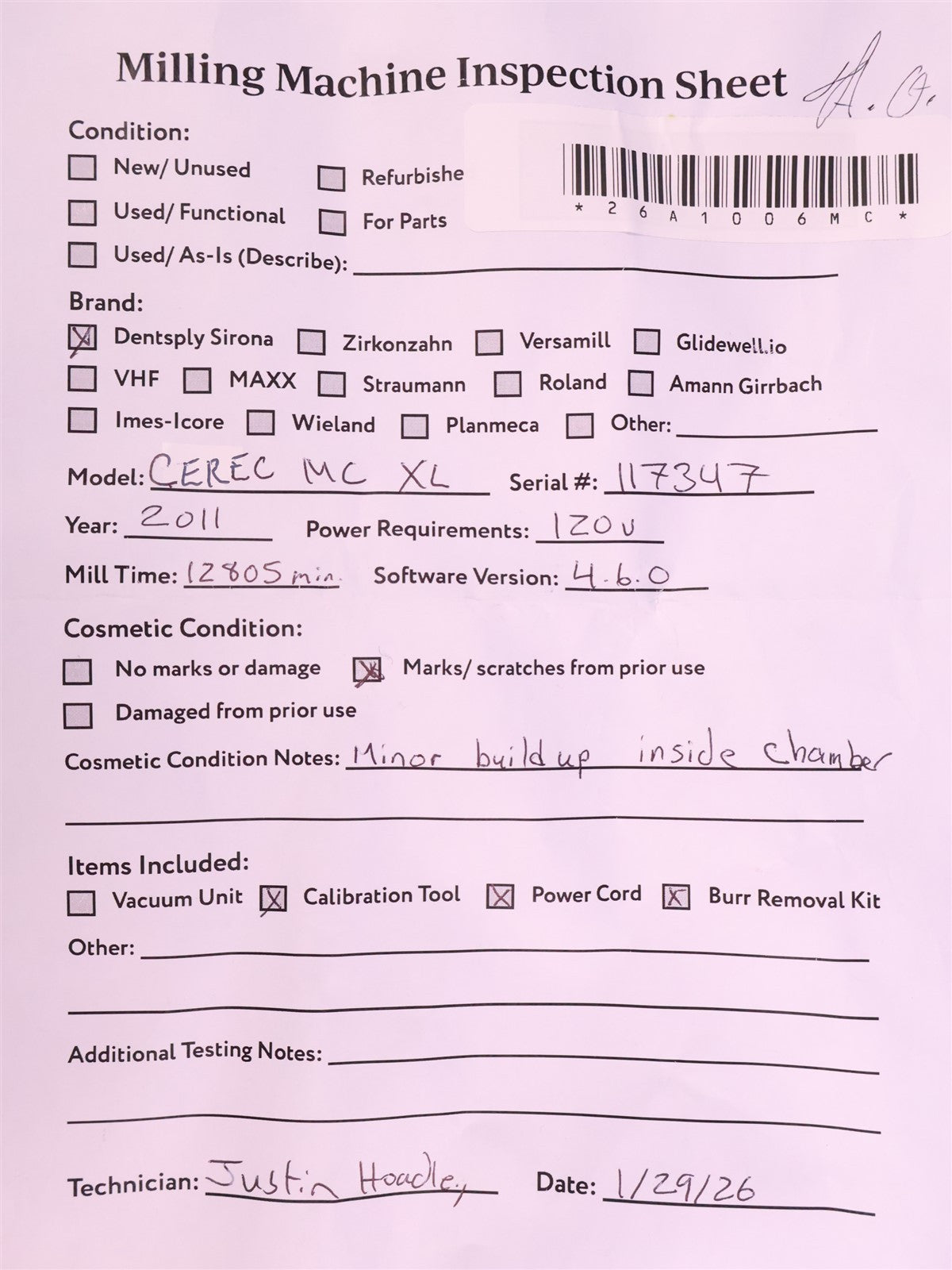 We're proud to be the most trusted source for quality used CAD/CAM units in the pre-owned dental equipment market. Your purchase will NOT include:This product is pre-owned and may not include the same accessories as a new, unused unit. - other accessories not shown or listed here.The unit was powered on and successfully updated to the latest software release. After the update, it completed a full cleaning cycle and was subsequently calibrated. The system then underwent an extensive suite of diagnostic evaluations, including the force‑sensor and stiffness assessment, load testing, and the motor stepper performance test. All diagnostics passed without issue. This unit is fully functional.