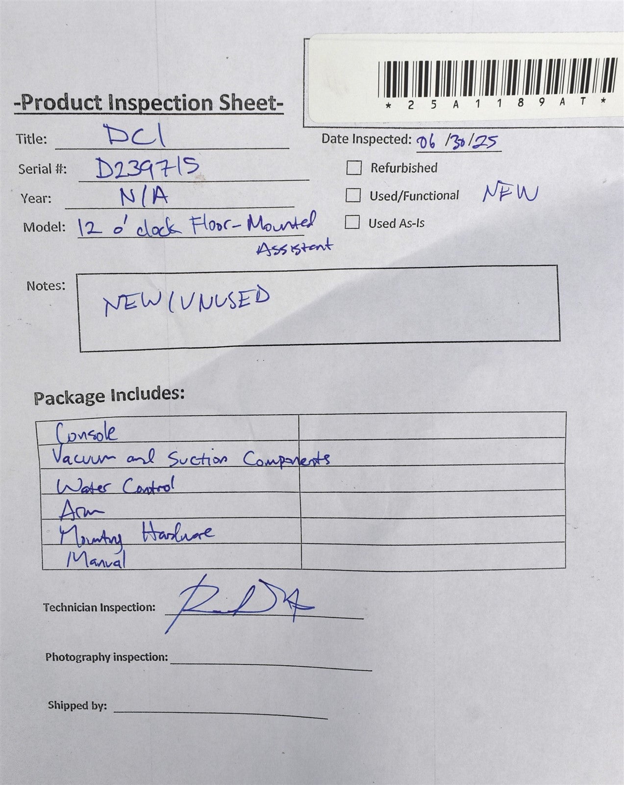 Console, Vacuum and Suction Components, Water Control, Arm, Mounting Hardware, User Manual