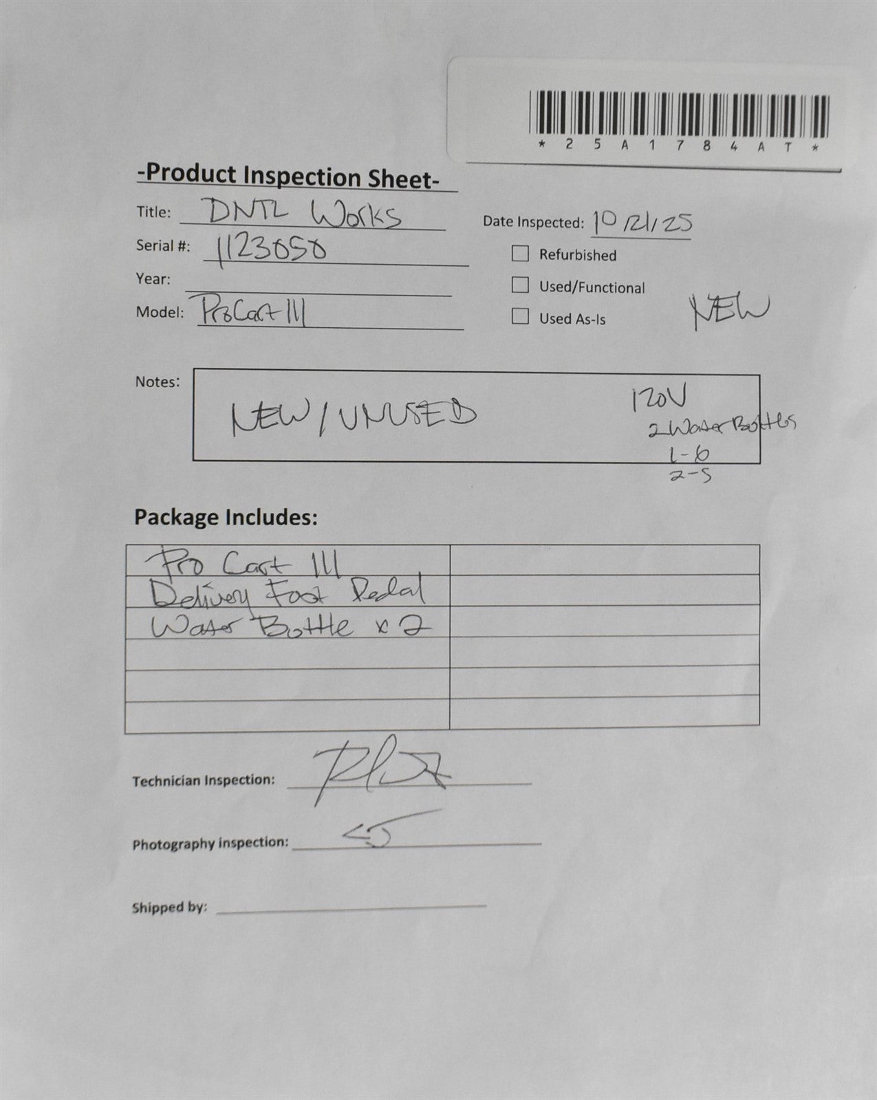 10/22/25 Visually inspected unit for damage and missing parts and/or accessories. This unit is new/unused. -RS