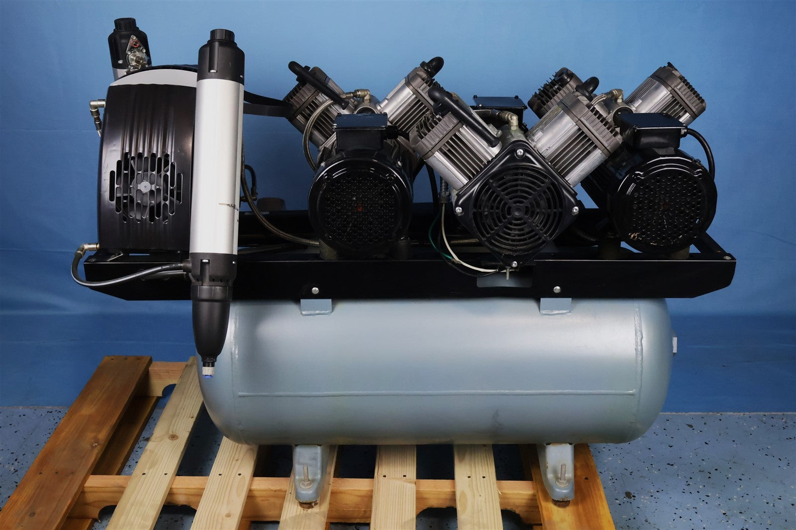 The unit was powered on and all operational switches were tested across each motor. Functional verification confirmed proper response from all controls, with motors engaging and disengaging as expected. No irregularities were observed during testing, and the compressor appears to be operating within normal parameters.