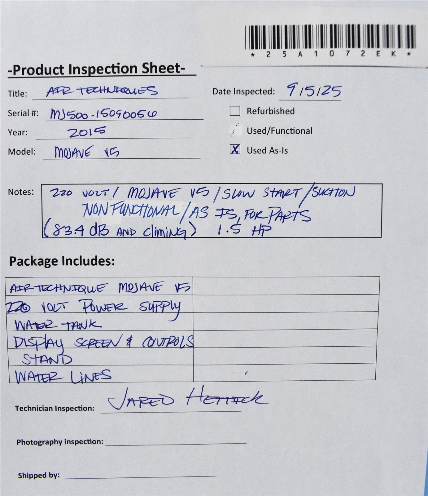 Air Techniques Mojave V5, 220 volt wiring, Water tank, Display screen and controls, Stand, Water lines.