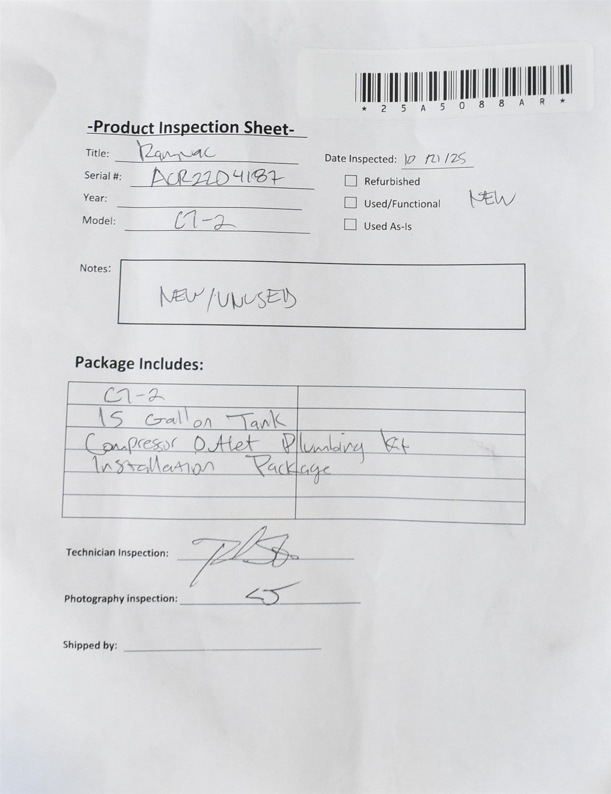 RamVac C7-2, 15-Gallon Tank, Compressor Outlet Plumbing Kit, Installation Package