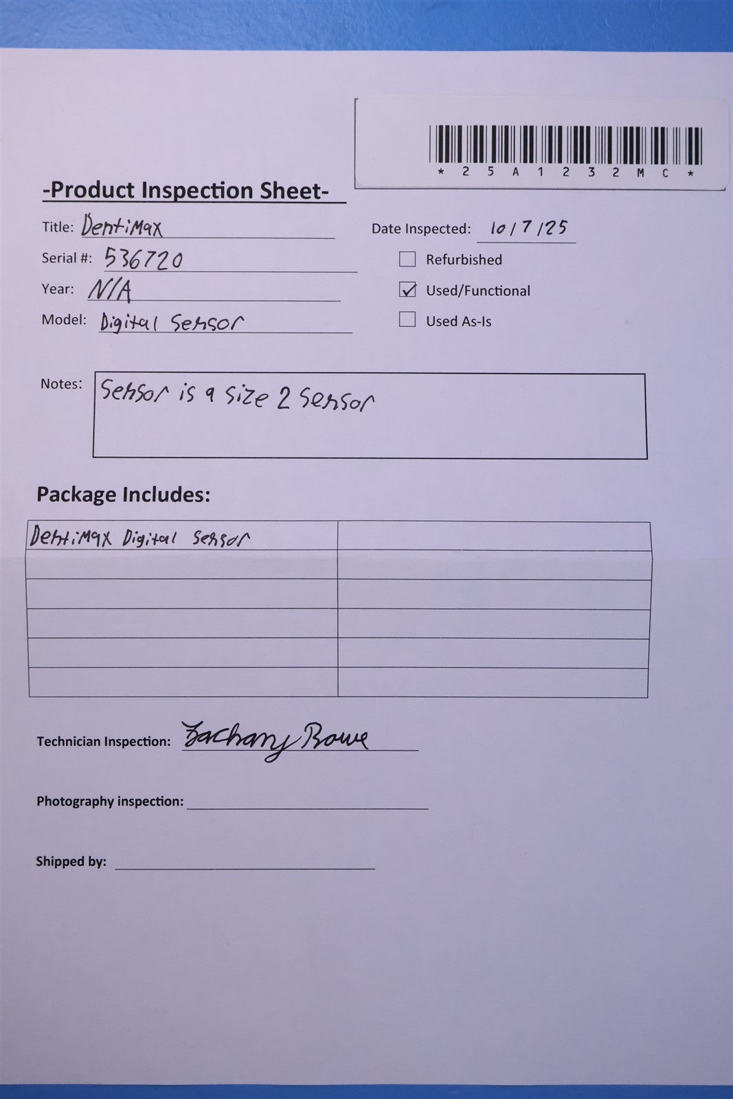 This item has undergone a thorough visual inspection and functional testing to check for any and all defects. The unit has been confirmed to be in complete working condition, size 2 sensor with no issues or malfunctions detected.