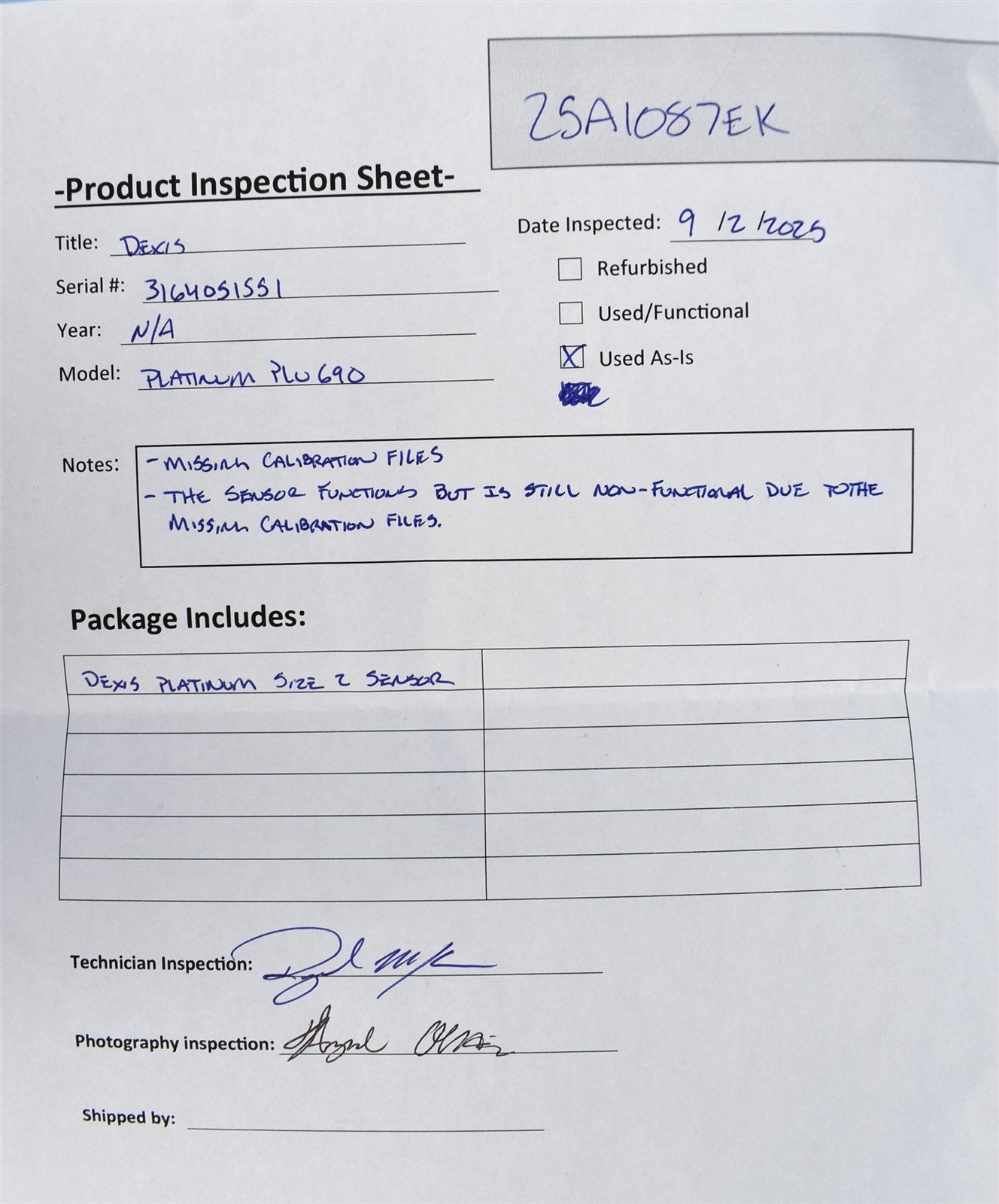 Visually inspected the sensor for any damaged or missing parts and accessories. The sensor did not come with any calibration files. I made calibration files which made the sensor work but all the images that are produced with the sensor have micro vertical lines through them. These sensors need to come with the calibration files or they will be used/as-is.