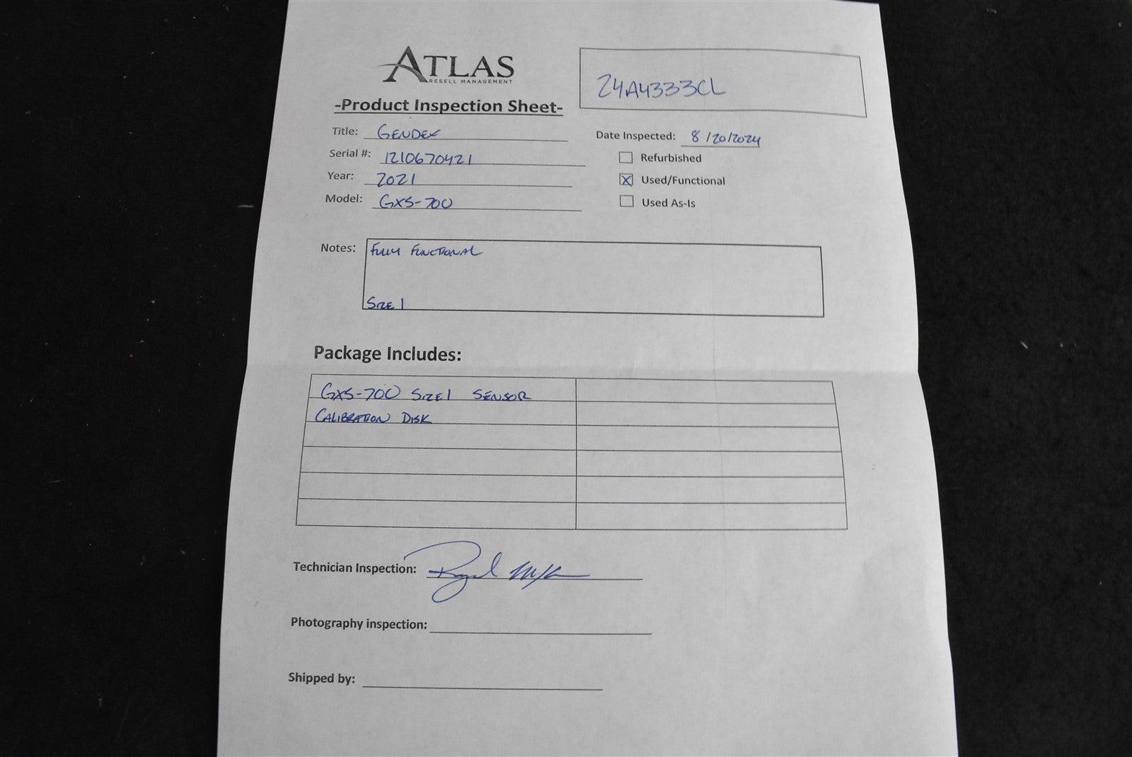 GXS-700 Size 1 Sensor, Calibration Disk