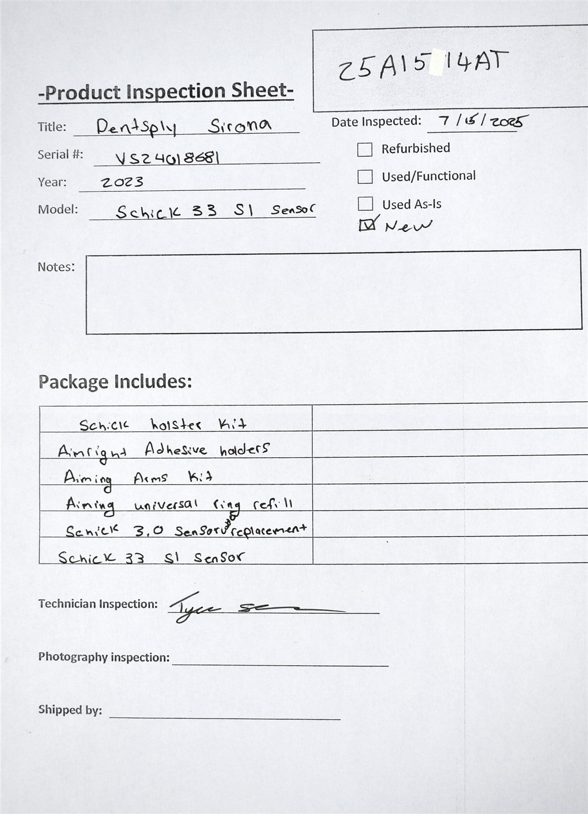 - Model: Schick 33 Size 1 Sensor