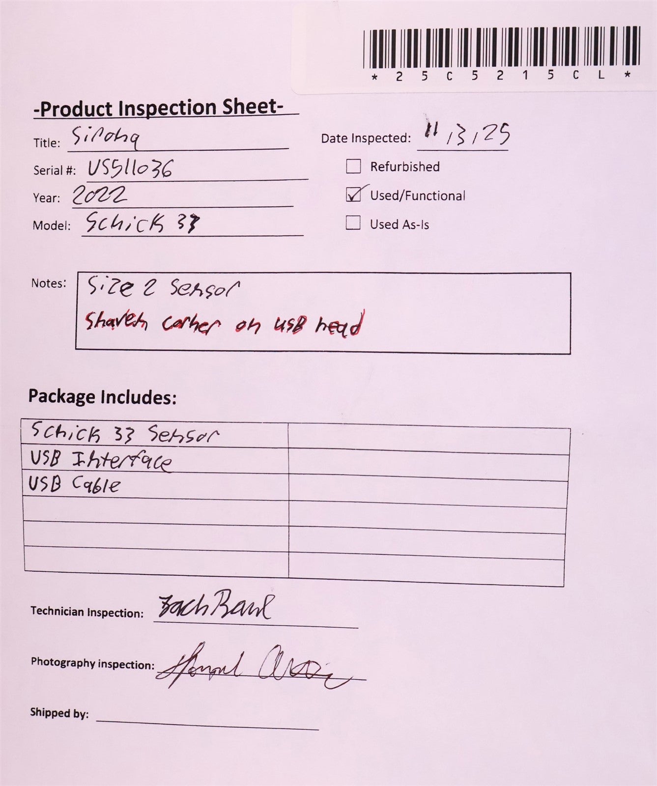 Your purchase will NOT include:N/AThis product is pre-owned and may not include the same accessories as a new, unused unit. - other accessories not shown or listed here.This item has undergone a thorough visual inspection and functional testing to check for any and all defects. The unit has been confirmed to be in complete working condition, size 2 sensor with no issues or malfunctions detected.