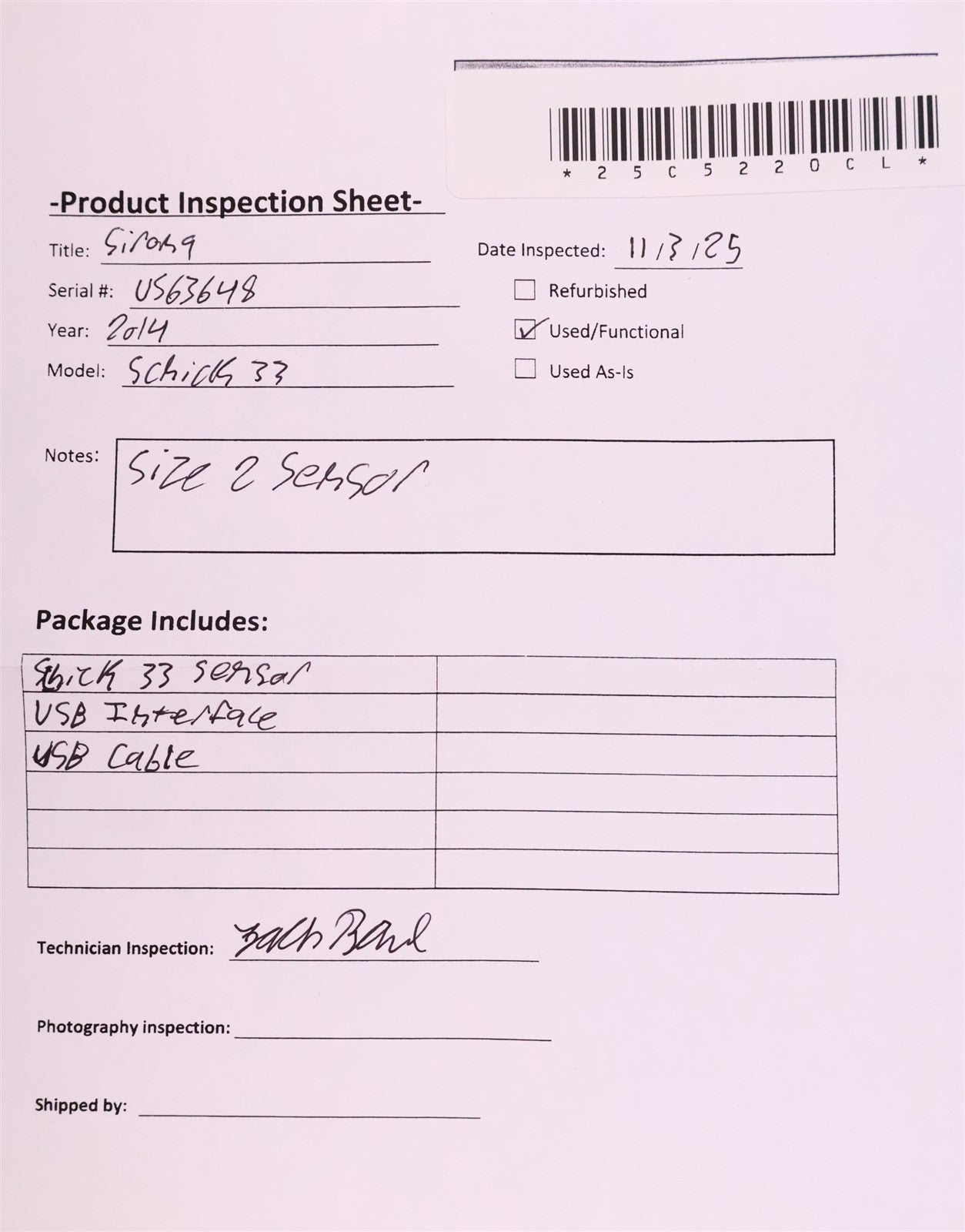This item has undergone a thorough visual inspection and functional testing to check for any and all defects. The unit has been confirmed to be in complete working condition, size 2 sensor with no issues or malfunctions detected.