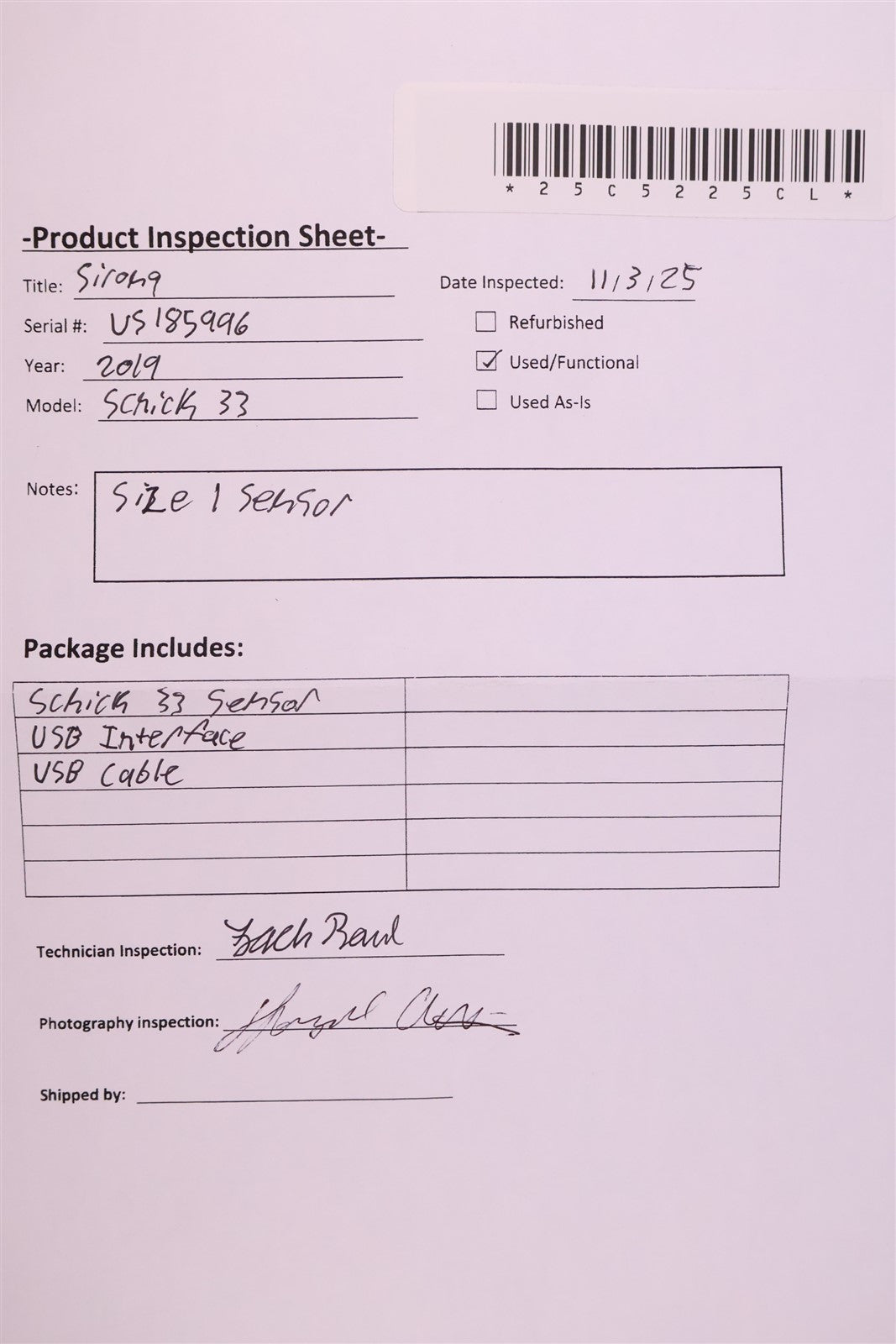 This item has undergone a thorough visual inspection and functional testing to check for any and all defects. The unit has been confirmed to be in complete working condition, size 1 sensor with no issues or malfunctions detected.