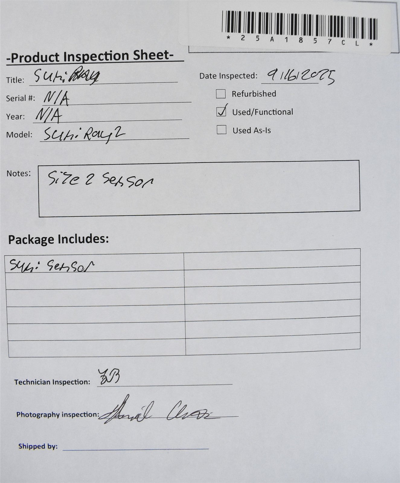 This item has undergone a thorough visual inspection and functional testing to check for any and all defects. The unit has been confirmed to be in complete working condition, size 2 sensor with no issues or malfunctions detected.