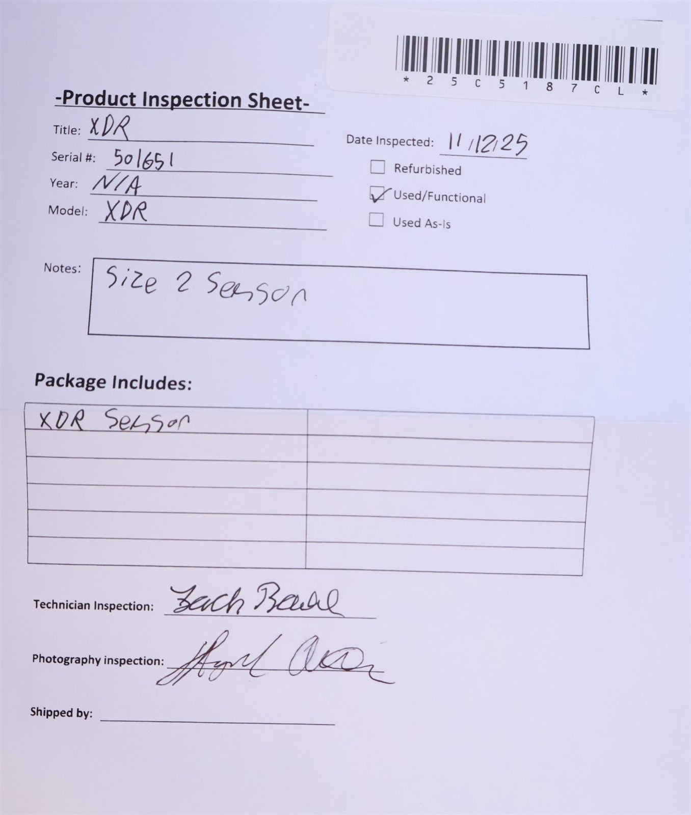 Your purchase will NOT include:N/AThis product is pre-owned and may not include the same accessories as a new, unused unit. - other accessories not shown or listed here.This item has undergone a thorough visual inspection and functional testing to check for any and all defects. The unit has been confirmed to be in complete working condition, size 2 sensor with no issues or malfunctions detected.