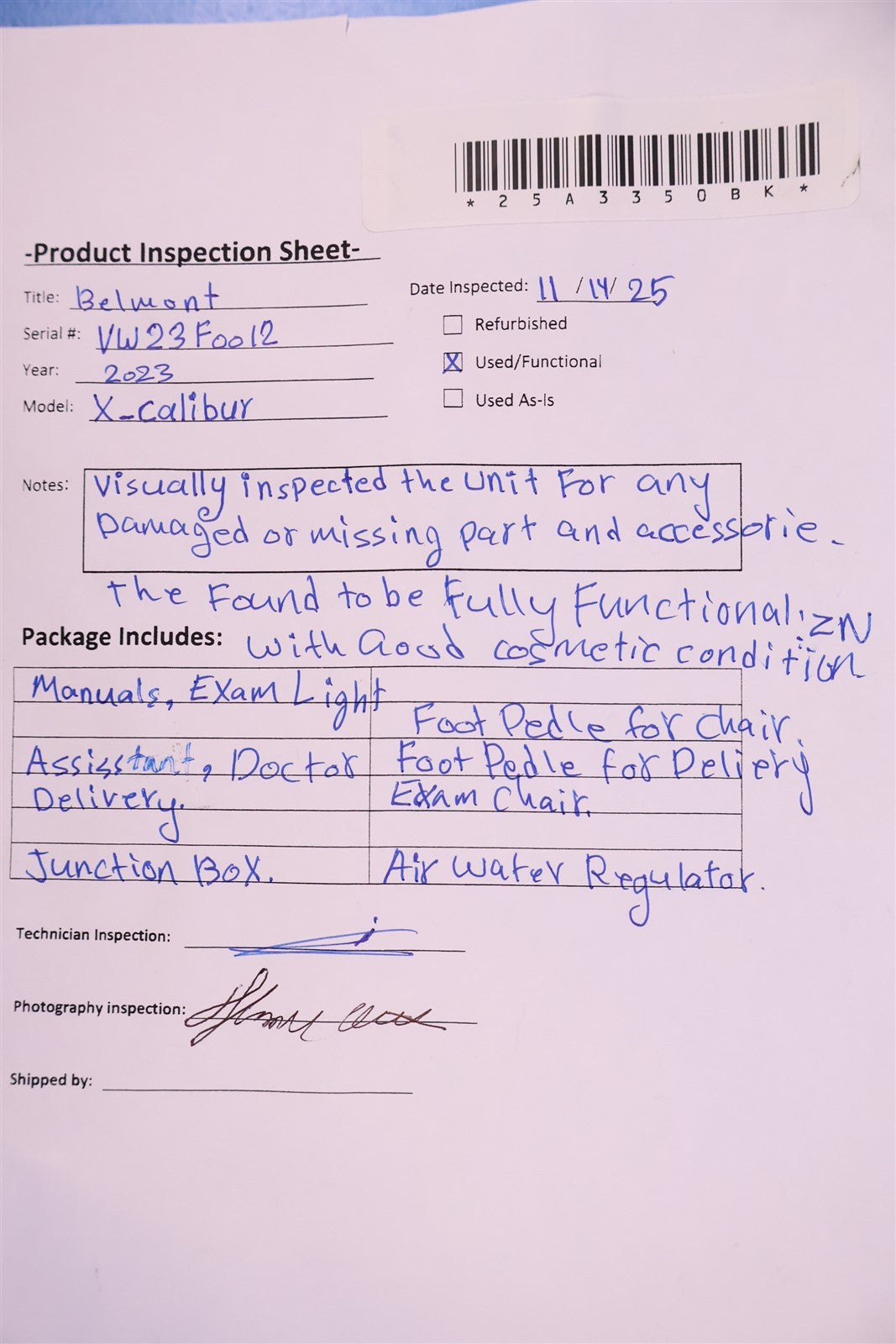 Manuals, Exam Light, Assissant and Doctor Delivery, Junction Box, Foot Pedle for chair, foot pedle for delivery, Exam chair, Air water regulator.