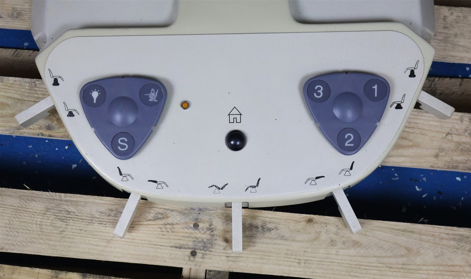 The Boyd S2615 Surgical Chair by Boyd Industries is a powered dental and medical procedure chair designed to provide stable patient positioning and ergonomic access for clinicians during oral surgery and other upper-body procedures. Its primary purpose is to support and position the patient comfortably while allowing the practitioner optimal access to the oral cavity and facial region during surgical or clinical treatments. The chair utilizes low-voltage electric actuators to control height, backrest positioning, and tilt functions, including Trendelenburg positioning, allowing precise patient positioning throughout procedures. The system also features programmable positioning, articulating headrest adjustments, and a cantilevered lift base for smooth movement and stability during use, making it suitable for dental surgery, implant procedures, and other clinical specialties requiring controlled patient positioning. Upon arrival of this unit, it underwent a complete inspection; visual and functionality. DOES NOT INCLUDE SEAT UPHOLSTERY. (Upholstery is blue shade) Foot Control: Corded, multi-function foot pedal permanently connected to the chair for controlling height, backrest, tilt, and programmed positions. NO MAJOR COSMETIC DAMAGE ASIDE FROM MARKS FROM PRIOR USE AND DISCOLORATION AT CHAIR BASE. Proceeded to attach to required power source (120V) power unit on with switch on back of base, did master safety switch, adjusted tilt, backrest, height, and pre programmed settings on chair. All responded with no complications. FINAL PRODUCT QUALITY INSPECTION STATUS- INCOMPLETE. USED AS-IS.. For the Boyd S2615 Dental Surgery Chair, the approximate height range from the floor is: Lowest height: ~21½ inches (about 21.5″) Highest height: ~35½ inches (about 35.5″)