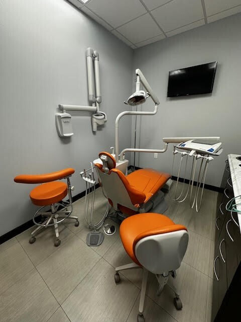 Lot of 4 exam chairs , Dr, and Asst. Stools, deliveries, and exam lights