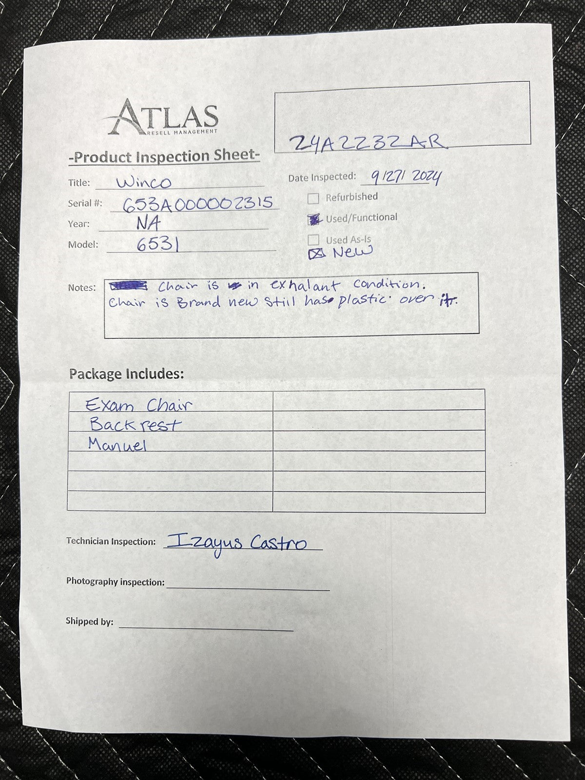 - Exam Chair Serial Number: 653A000002315