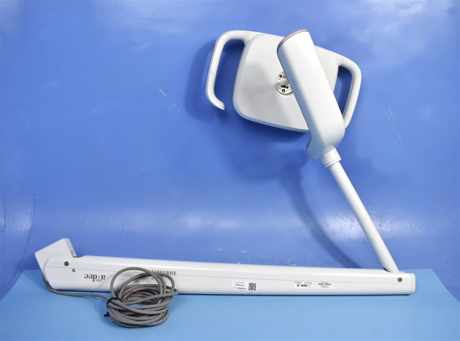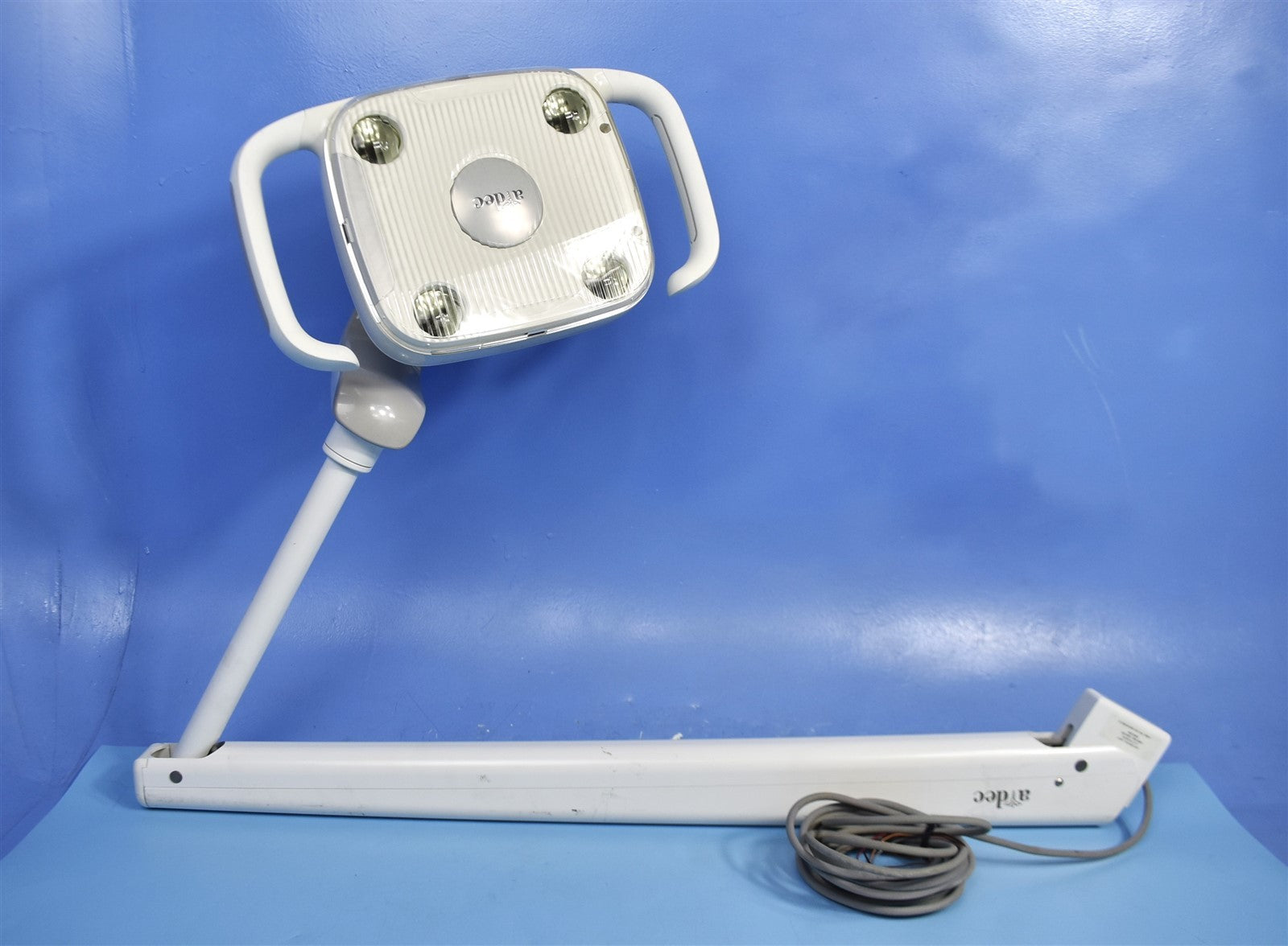 Your purchase will NOT include:This product is pre-owned and may not include the same accessories as a new, unused unit. - other accessories not shown or listed here. Advanced LED Technology: Four bright white LEDs provide uniform illumination, reducing shadows. High Light Intensity: 25,000 lux in high mode and 8,000 lux in low/composite mode. Natural Light Color: 5000K color temperature for accurate color rendering. Feathered Edge Illumination: 3.8" x 5.7" spot size at 27.6" focal distance for broad, even coverage. Heat-Free Operation: Produces only 51 BTUs for patient comfort. Three-Axis Rotation: Full horizontal, vertical, and diagonal adjustments for optimal positioning. Touchpad Integration: Compatible with A-dec chair touchpads for seamless control and auto on/off. Durable Finish: White paint with gray accents for long-lasting aesthetics. Mounting Compatibility: Works with A-dec 311, 411, and 511 dental chairs.08/26/25 Exam Light has been inspected for missing components and damages, unit is fully functional but does not include harness