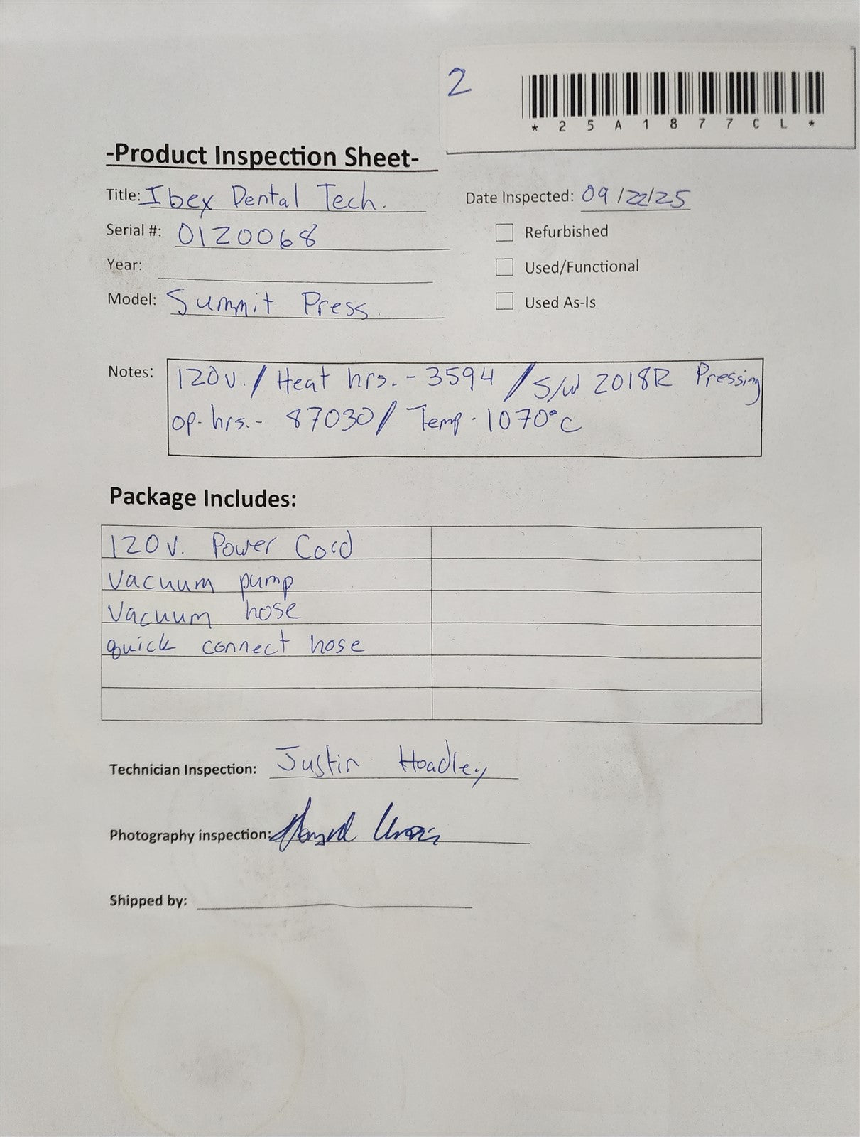 - Serial Number: 0120068