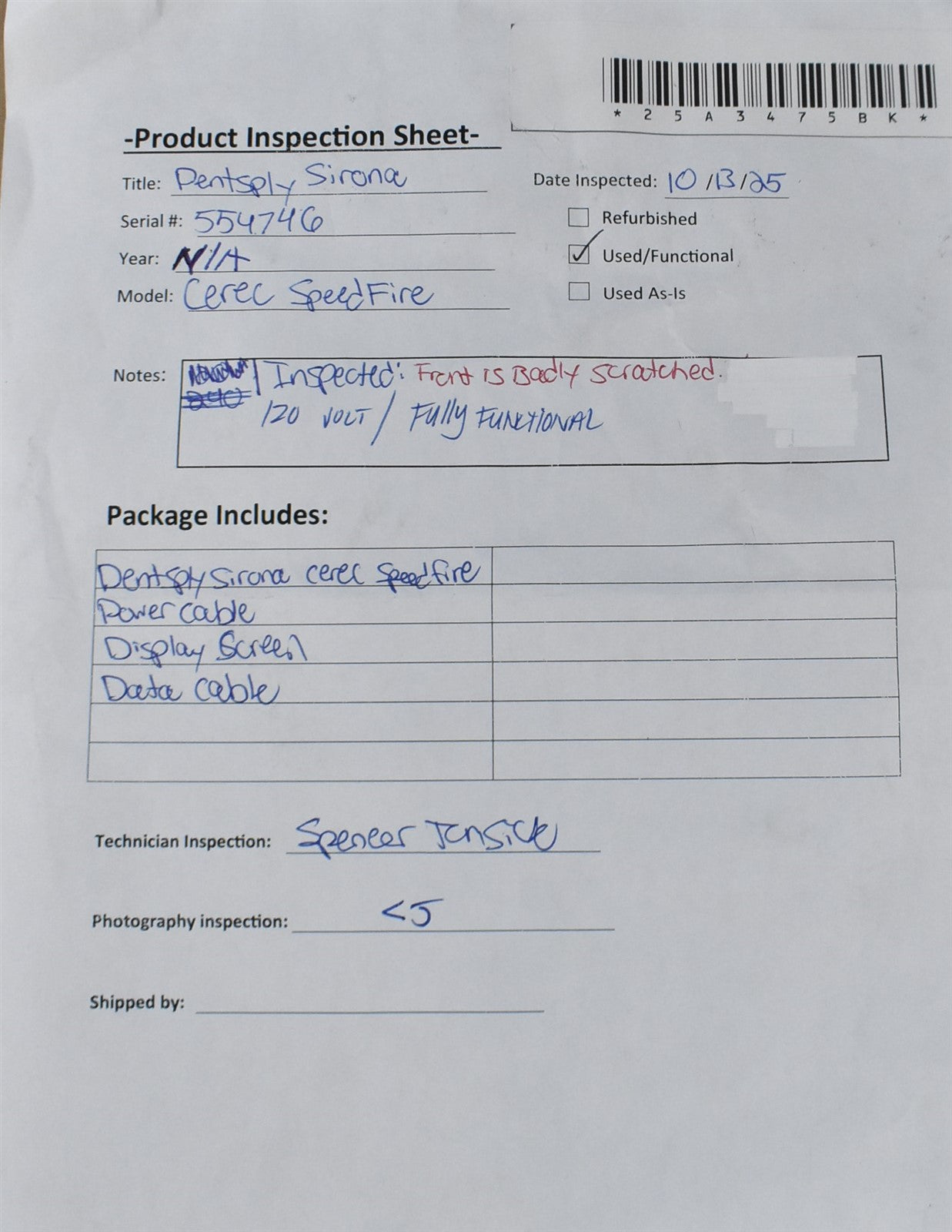 Dentsply Sirona Cerec Speedfire, Power Cable, Display Screen, Data Cable