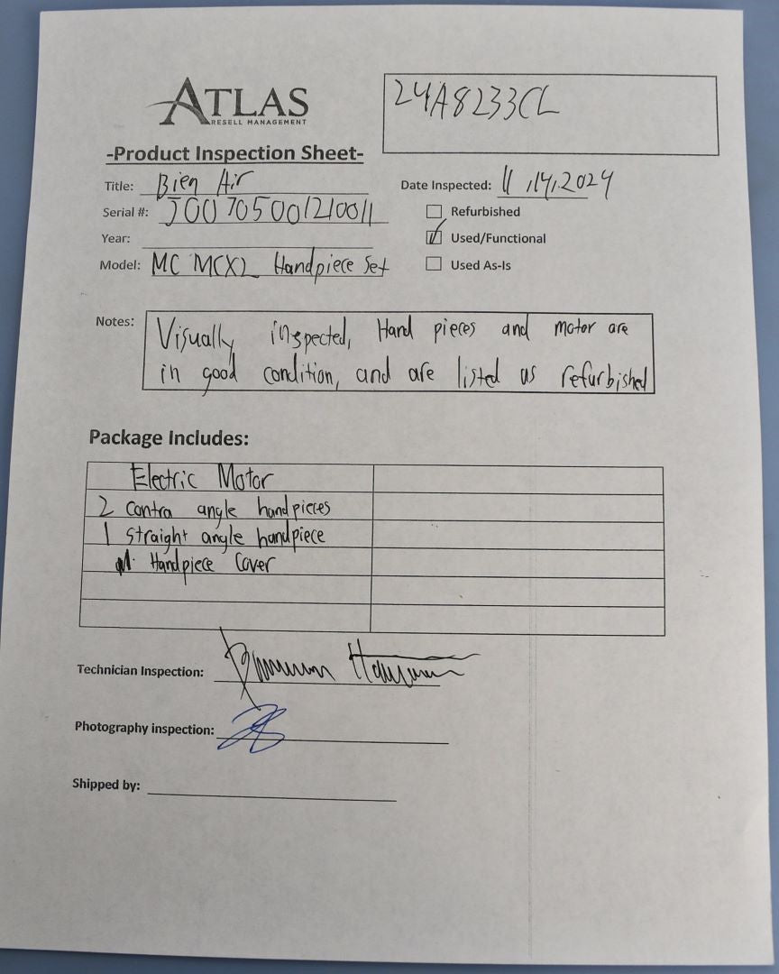 Bien Air MC MCX2 Dental Dentistry Handpiece Set