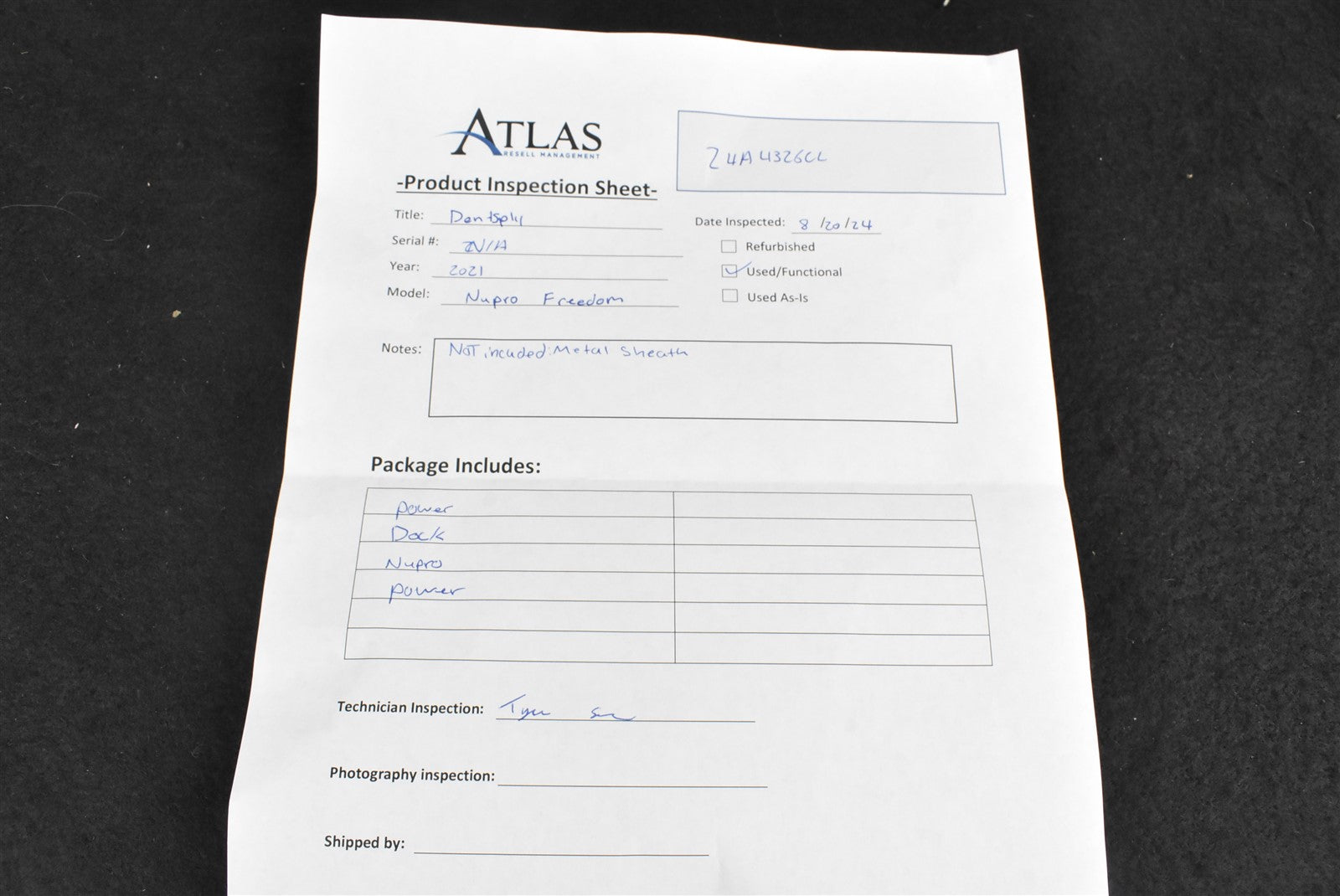 I set this item up and let it charge for a bit. After that I powered this item on and tested it with the foot pedal. This unit is fully functional and is in good cosmetic condition. Metal sheath not included.