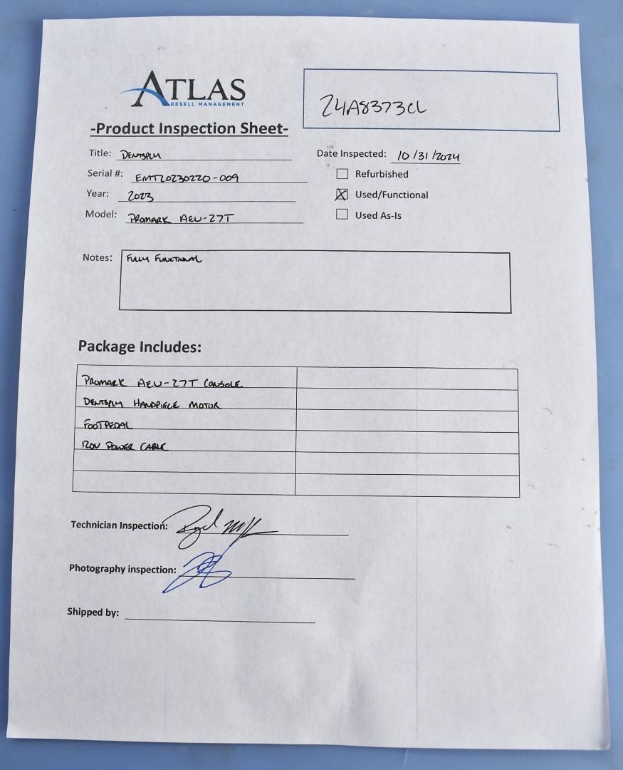 Promark AEU-27T Console, Dentsply Handpiece Motor, Foot Pedal, 120v Power Cable