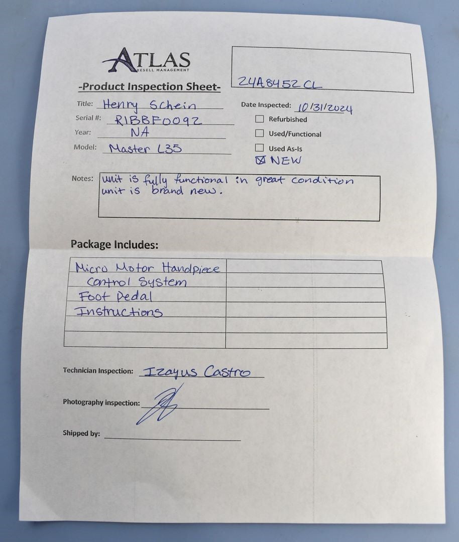 Your purchase will NOT include: - other accessories not shown or listed here.Unit is fully functional in great condition unit is brand new. Control Unit SN R2BbFN092 Handpiece SN R2BBFN092 Foot Pedal SN T15R221LG192
