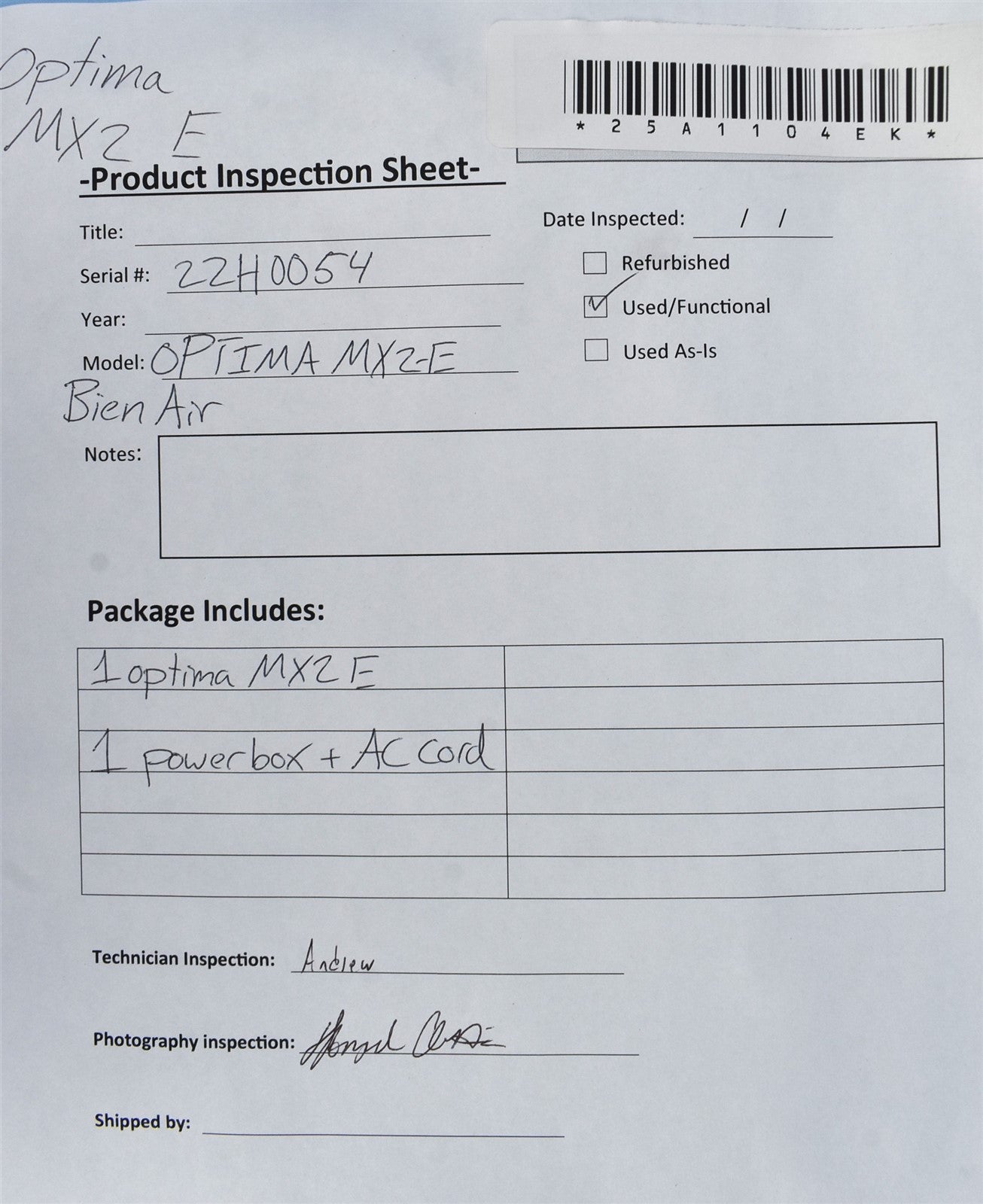 • Serial Number: 22H0054