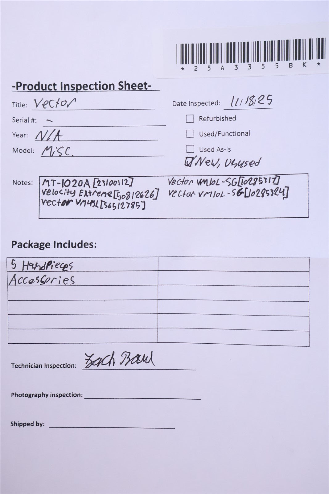 Inspected Visually Because Everything Is New Has All Parts And Good Conditions.