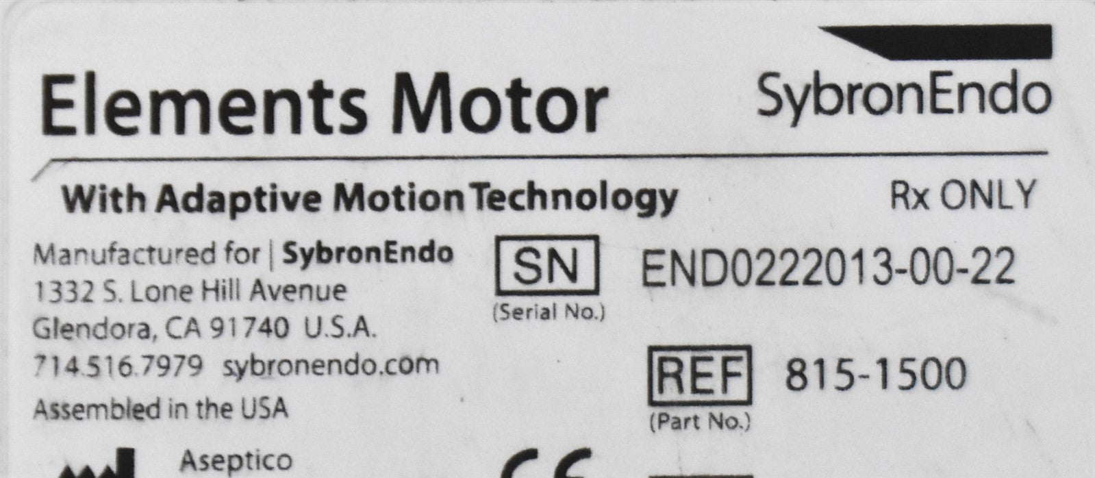 SybronEndo Elements Motor - I Plug in the unit and power on. Confirm LCD screen activates with no pixel faults. I looked for the SybronEndo logo and preset menu. Attach the handpiece and contra-angle. Tested High and Low RPM.