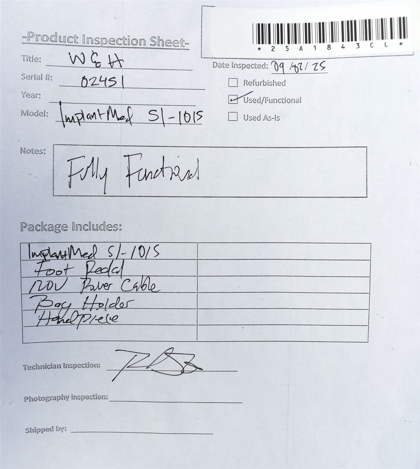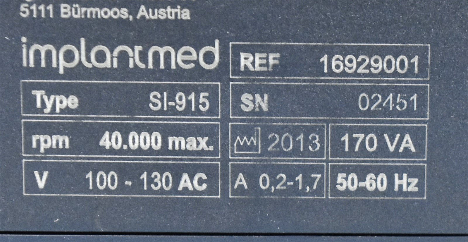 ImplantMed SI-915, Foot Pedal, Bag Holder, 120V Power Cable, Handpiece