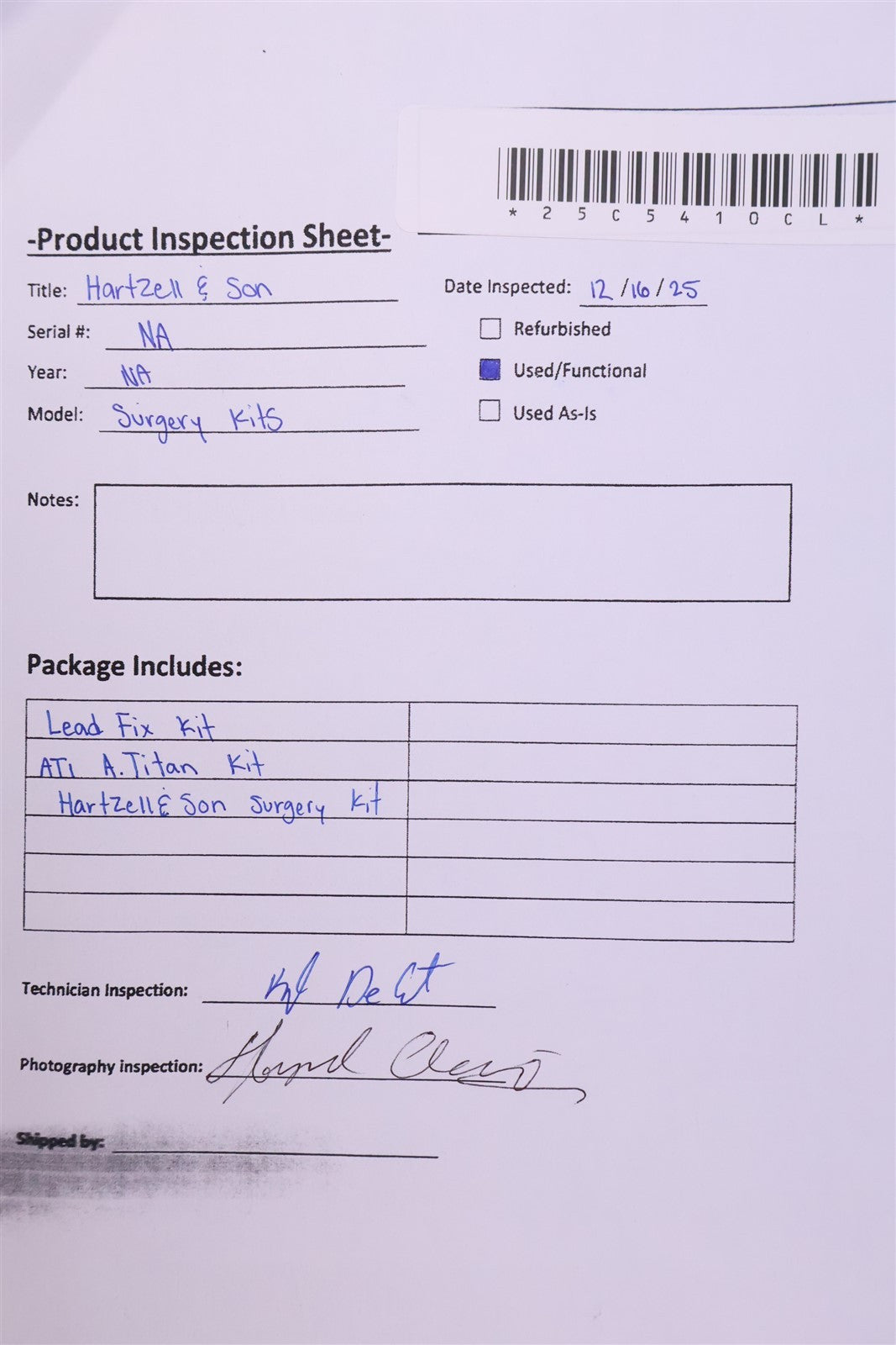 Your purchase will NOT include: This product is pre-owned and may not include the same accessories as a new, unused unit. - other accessories not shown or listed here.Visually inspected each kit. Hartzell&Son kit, LeadFix Kit, ATI A. Titan Kit.