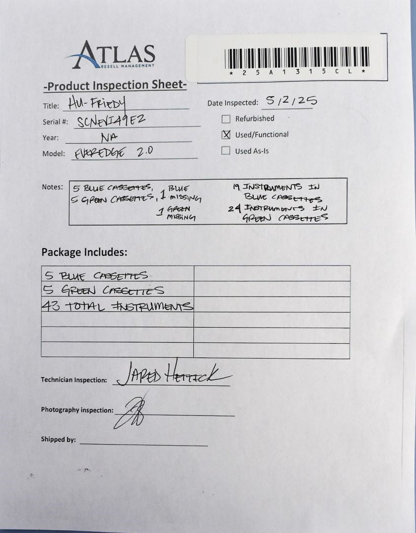 5 Blue cassettes, 5 Green cassettes, 19 Instruments in blue cassettes, 24 instruments in Green cassettes.