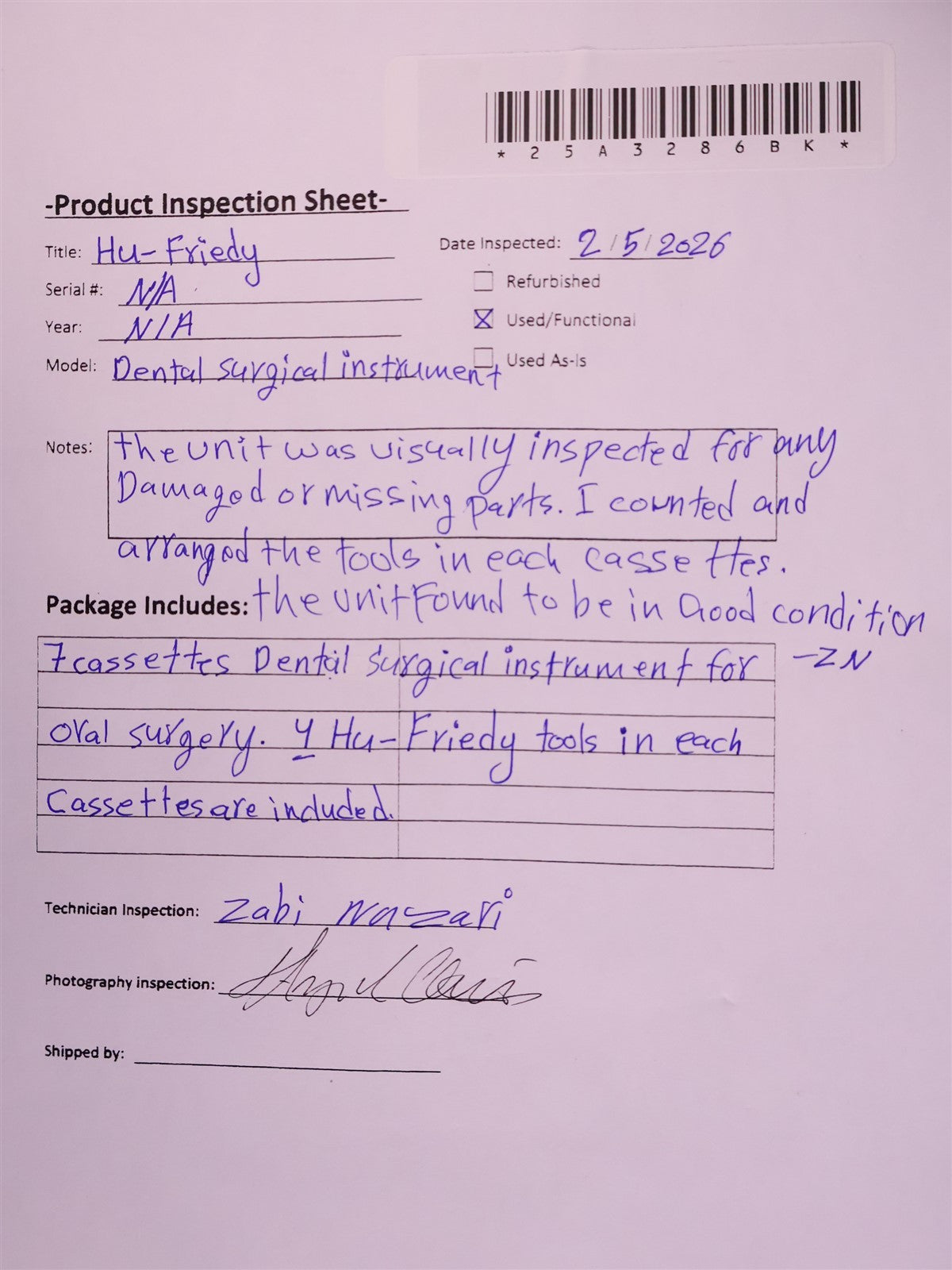 The unit was visually inspected for any damaged or missing parts. I counted, arranged the tools in each cassettes. The unit found to be in good condition-ZN