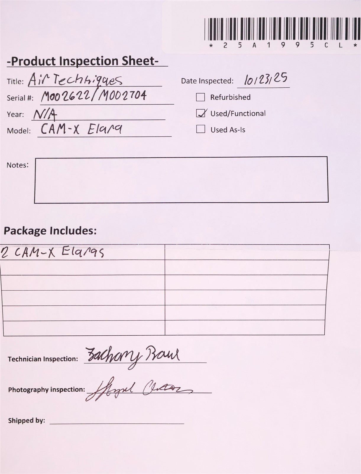 - Serial Number: M002622/M002704