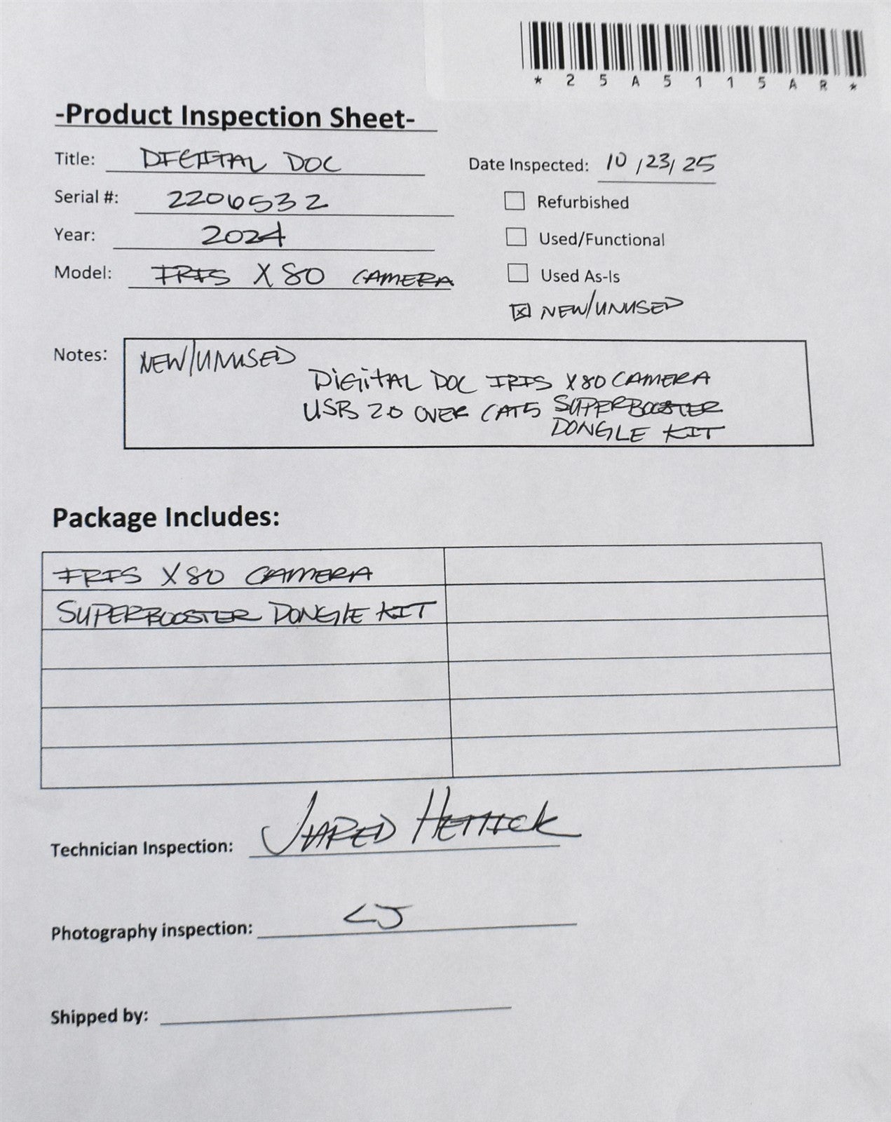 Verified that all components are present, undamaged, and document condition without powering on the unit.