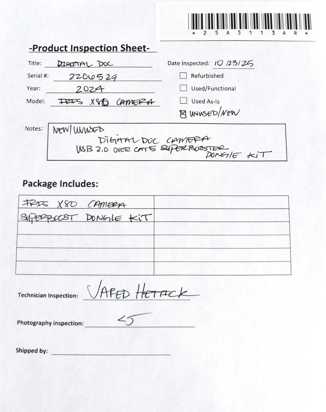 Verified that all components are present, undamaged, and document condition without powering on the unit.