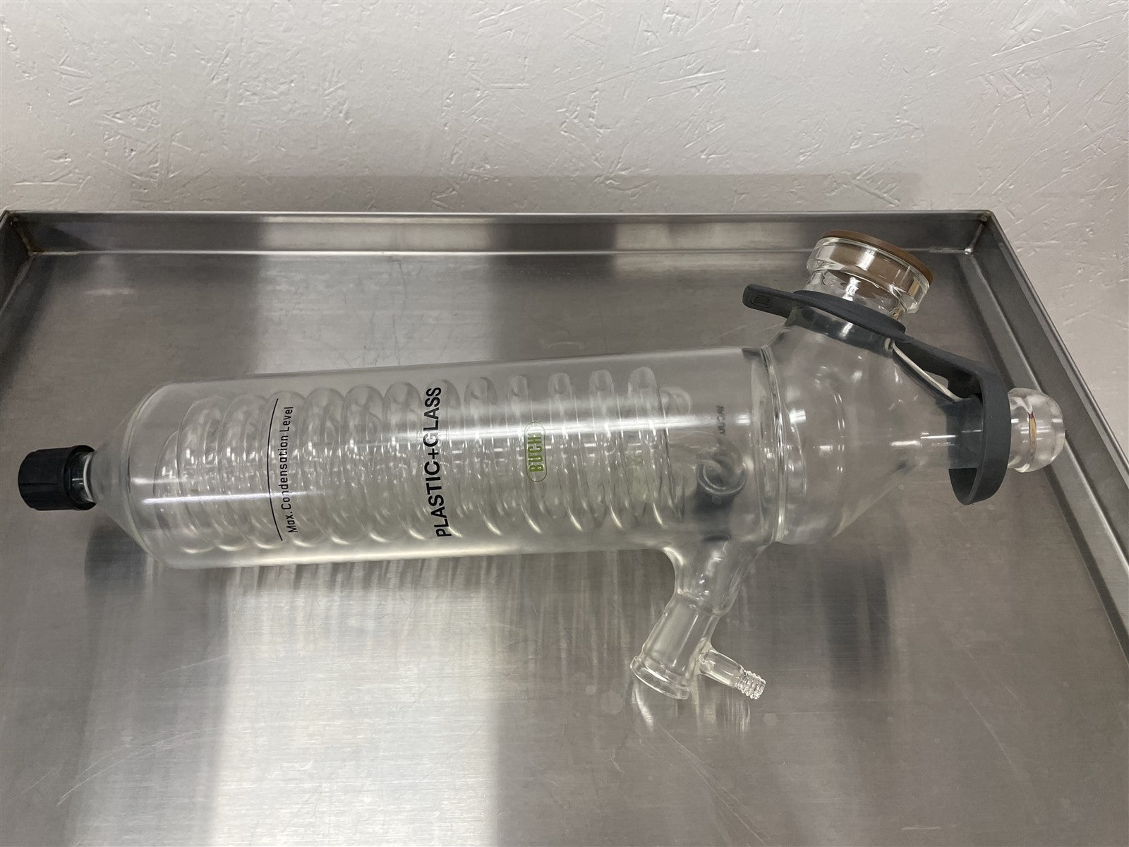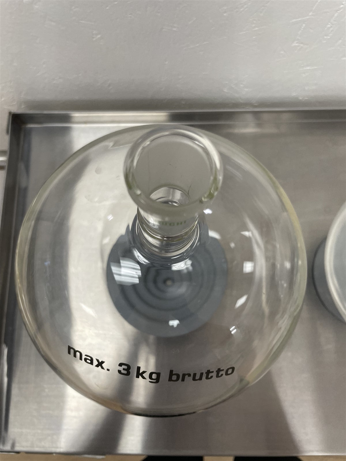 Heating bath base, heating bath basin, drying flask(2L), evaporating flask(1L), receiving flasks (3L & 1L), vertical condenser, vacuum pump PM kit, and miscellaneous maintenance tools and replacement pieces shown in photos
