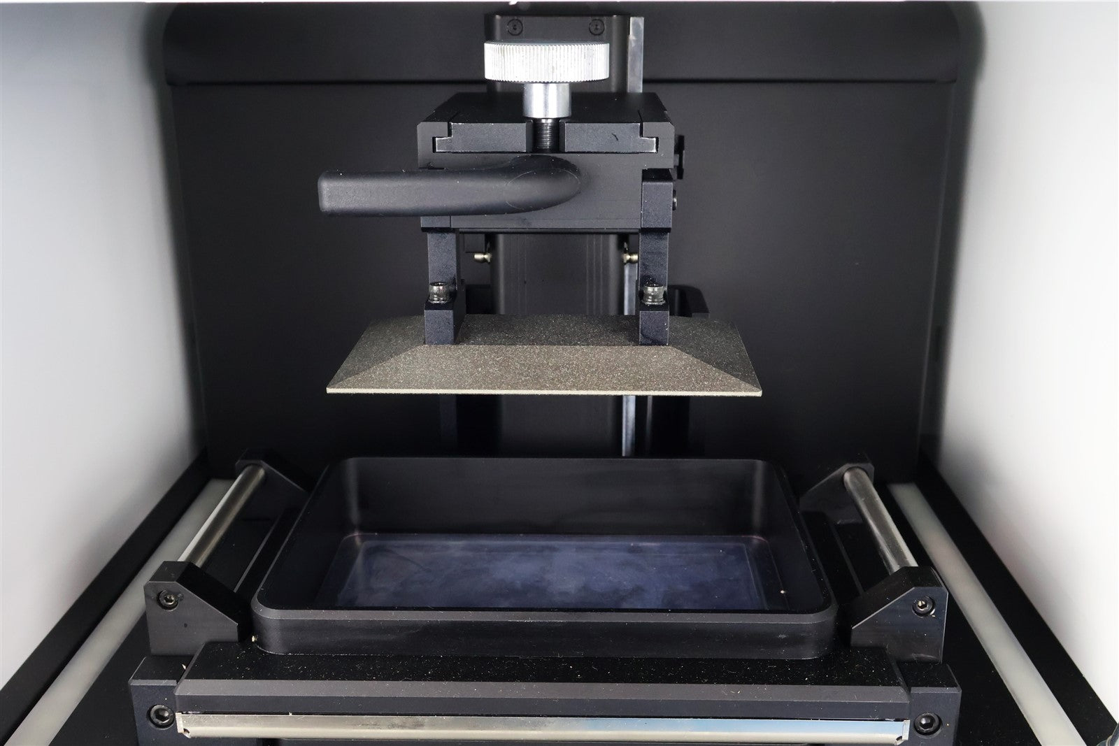 We do not have resin to test this unit. So I navigated the menus and started a build without resin just to ensure the stage moves as intended. That is the extent of our test. This unit does NOT include software, USB, Ethernet, or resin. Software may need to be purchased from the manufacturer that could possibly mean some additional cost. Cosmetically this item is in fair condition because it has resin throughout the unit and marks.
