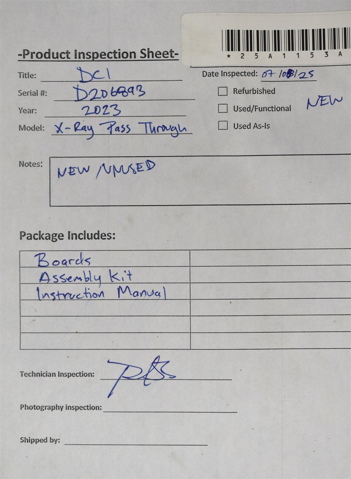Visually inspected the unit for any damaged or missing parts and accessories. This unit is new/unused