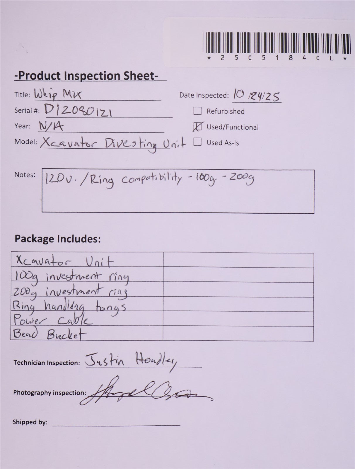 Xcavator Divesting Unit, Power Cable, 100g Investment Ring, 200g Investment Ring, Ring Handling Tongs, Bead Bucket