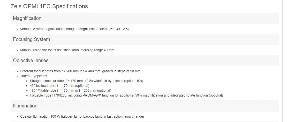 Zeiss OPMI 1 FC Dental Dentistry Microscope Magnification Unit Machine