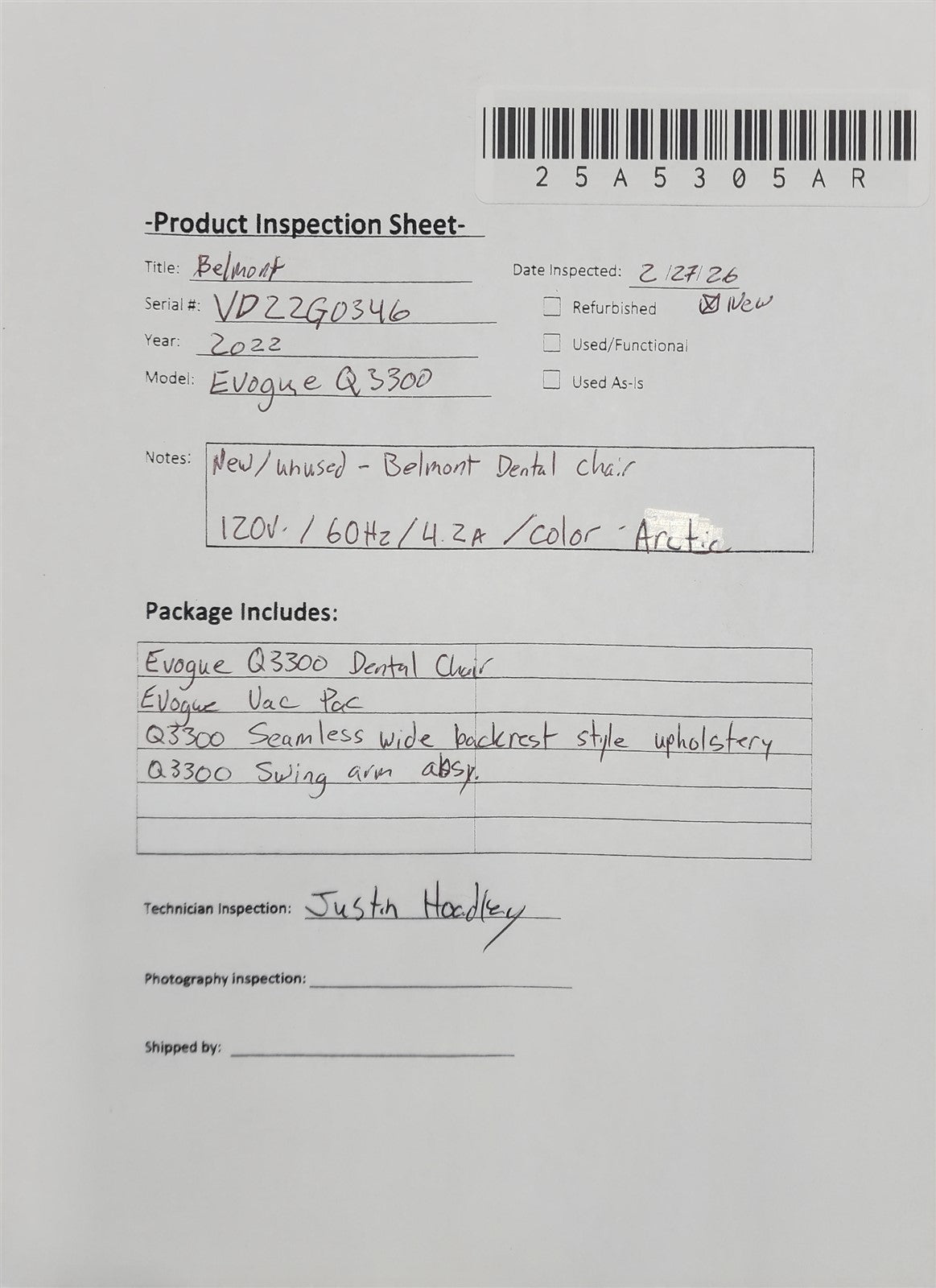 Q3300 Dental Chair, Evogue Vac Pac, Q3300 Seamless upholstery, Q3300 Swing Arm ASSY.