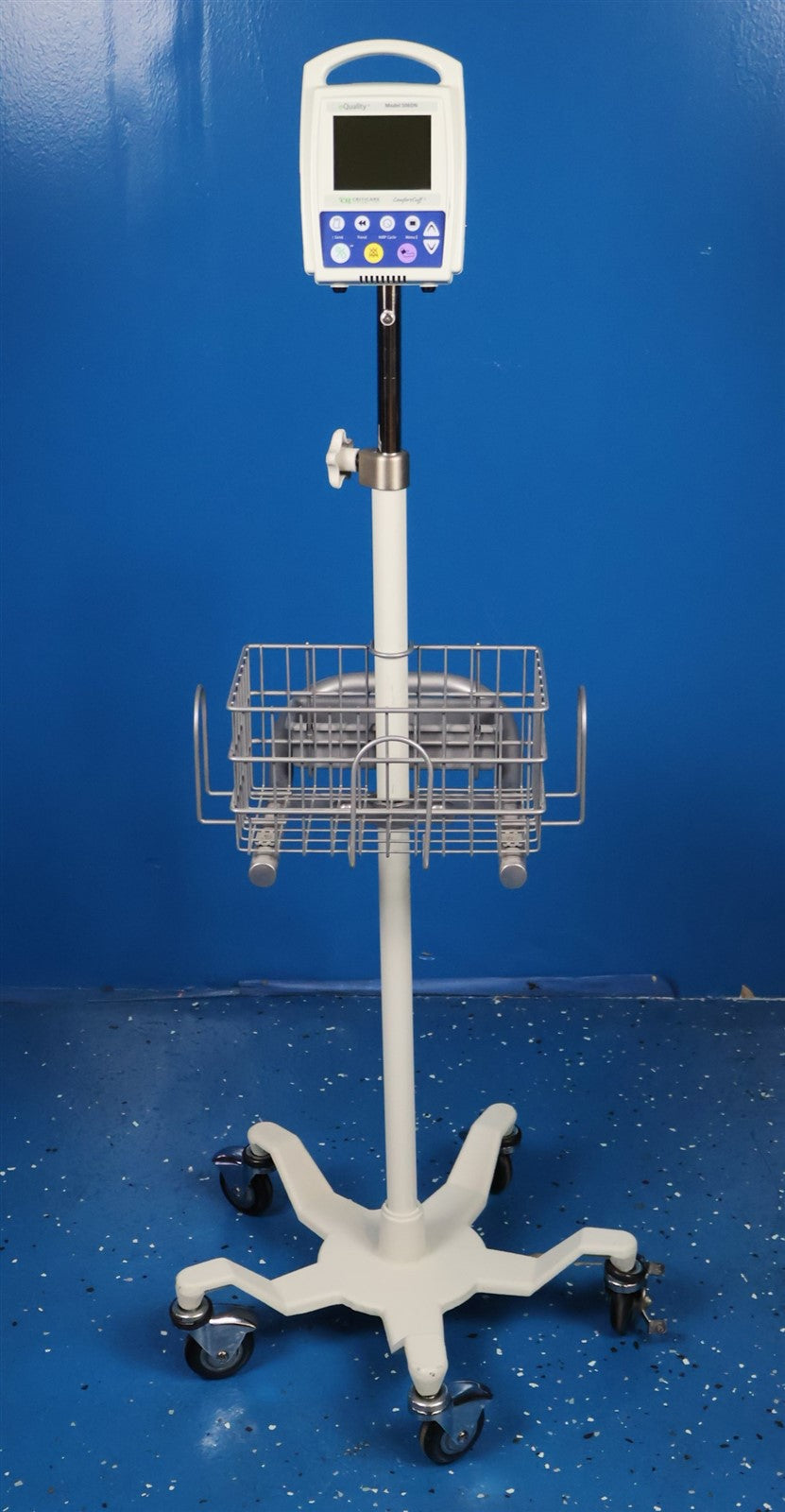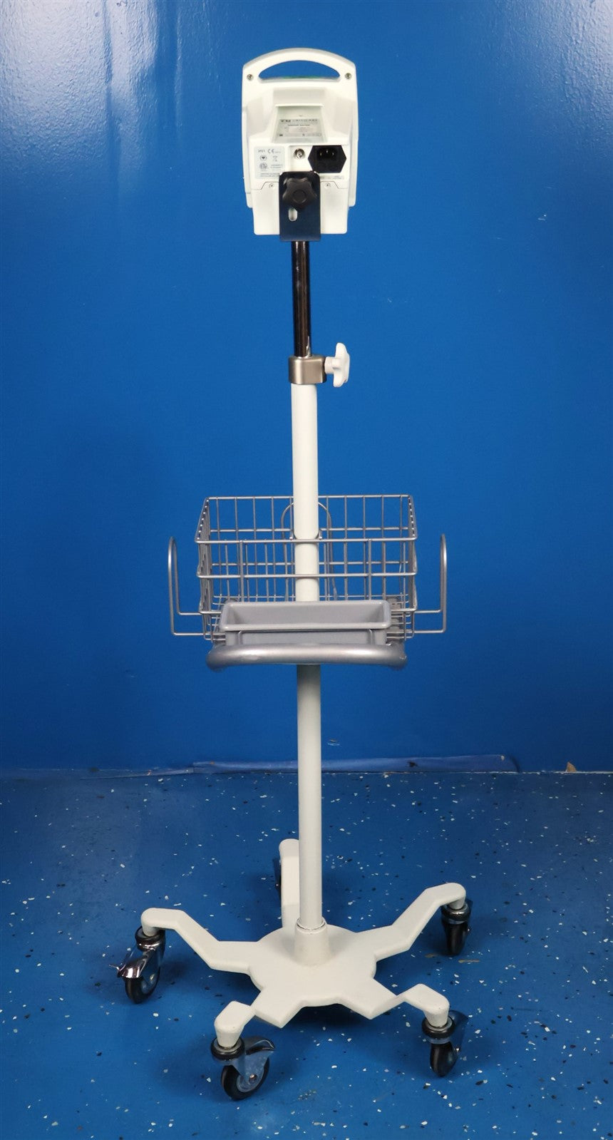 Wheeled Base, Adjustable Stand, Monitor, Power Cord, Finger sensor Cord, Cable, Material Tray