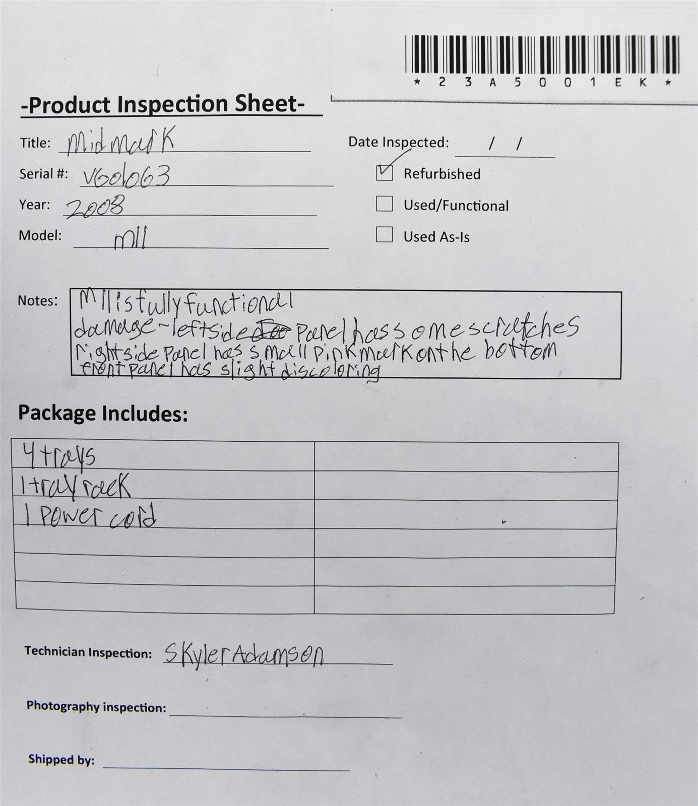 - Serial Number: v601063