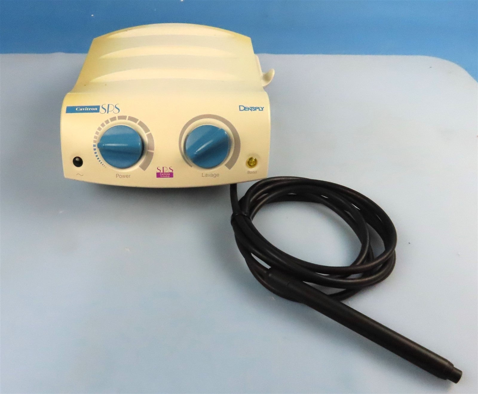 Your purchase will NOT include: This product is pre-owned and may not include the same accessories as a new, unused unit. - other accessories not shown or listed here.Dentsply Cavitron Select SPS, I Turn the unit on using the Power Control knob. Confirm the power indicator light is illuminated.Attach handpiece to its cable connector. i Set the lavage control to maximum.Without an insert installed, hold the handpiece over a sink.Activate the foot control and flush the water line for at least 2 minutes. The unit has been cleaned and disinfected. Inspection Result: - Ready for Resale.